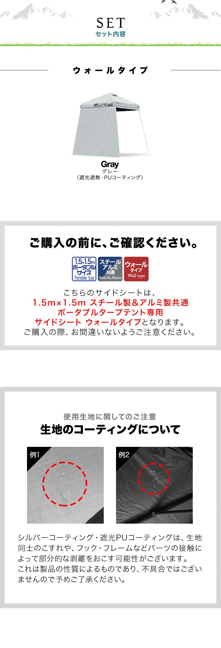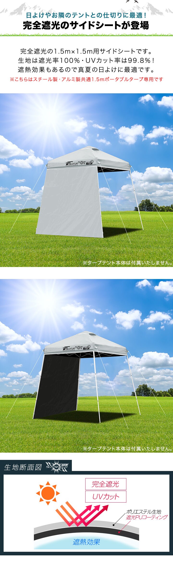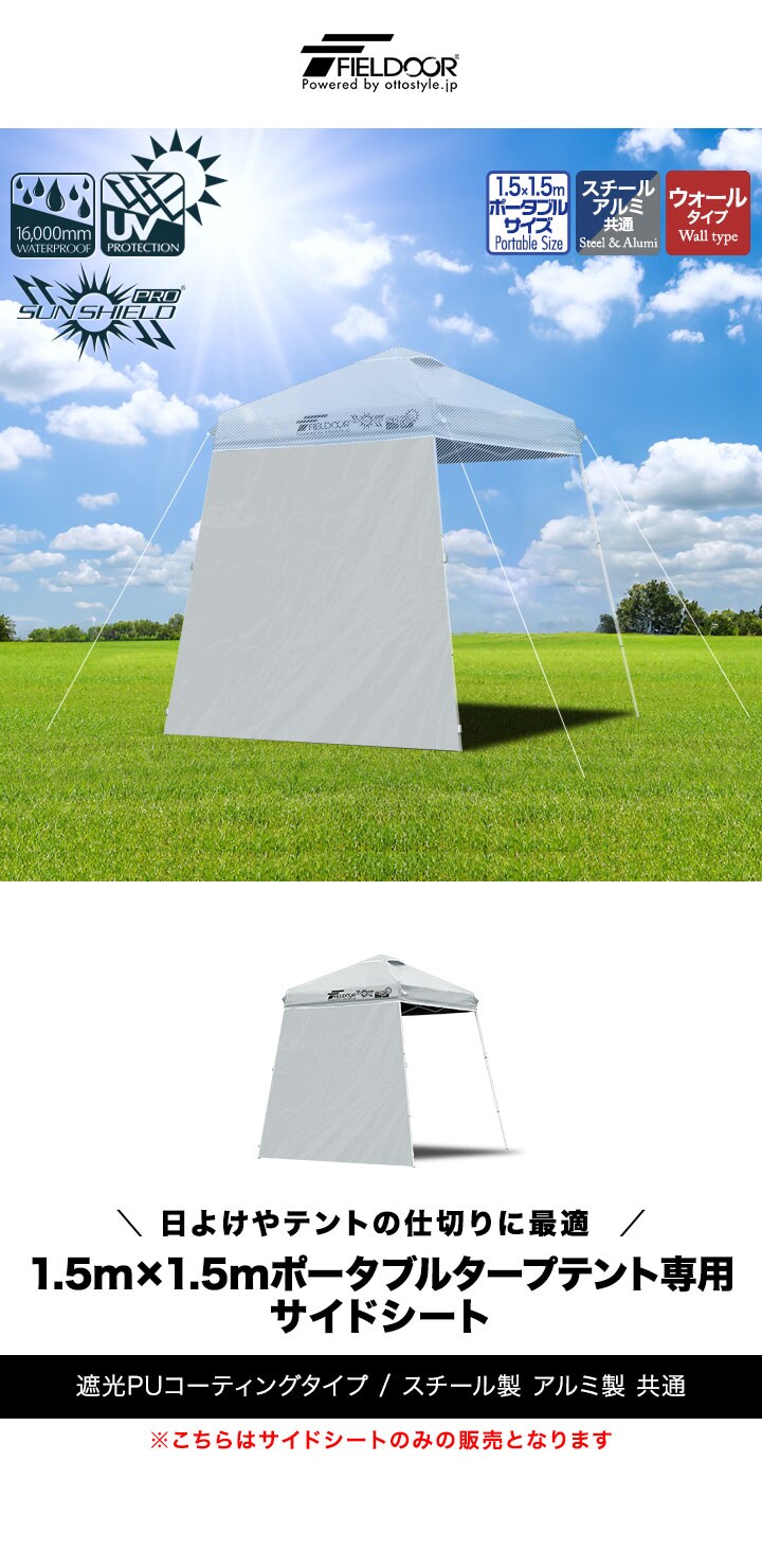 FIELDOOR ポータブルタープ 1.5m 専用 サイドシート 1枚単品 (遮熱遮光PU:グレー) 共通 スチール/アルミ ウォールスクリーン 横幕 ワンタッチタープ ポータブルタープテント 1.5m×1.5m用 オプション 交換用 ※シートのみ、タープ本体別売 送料無料