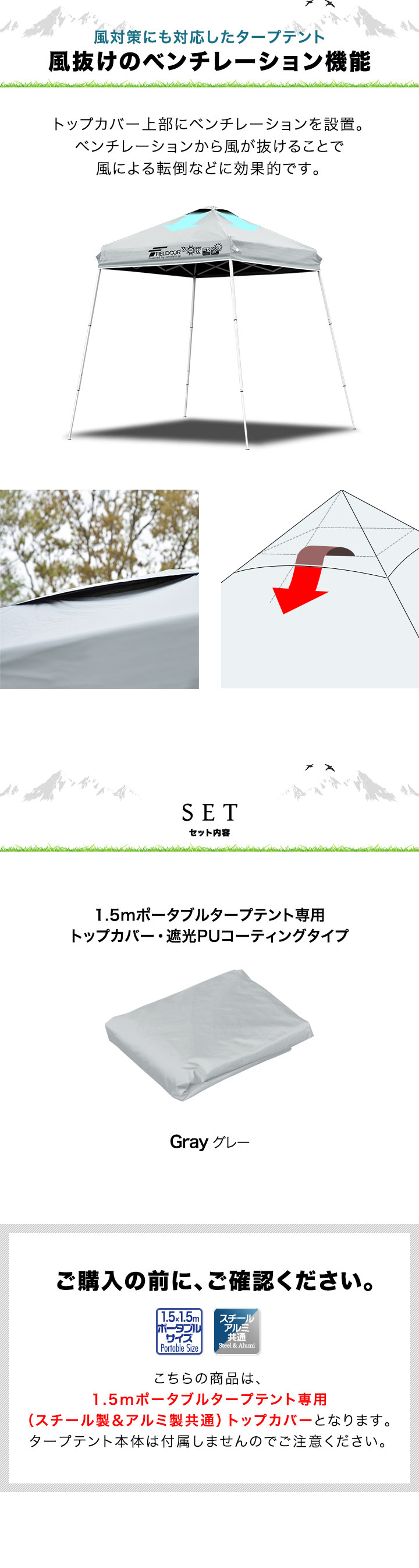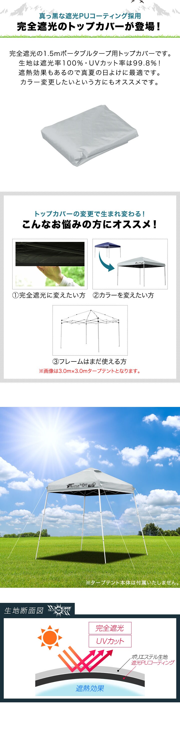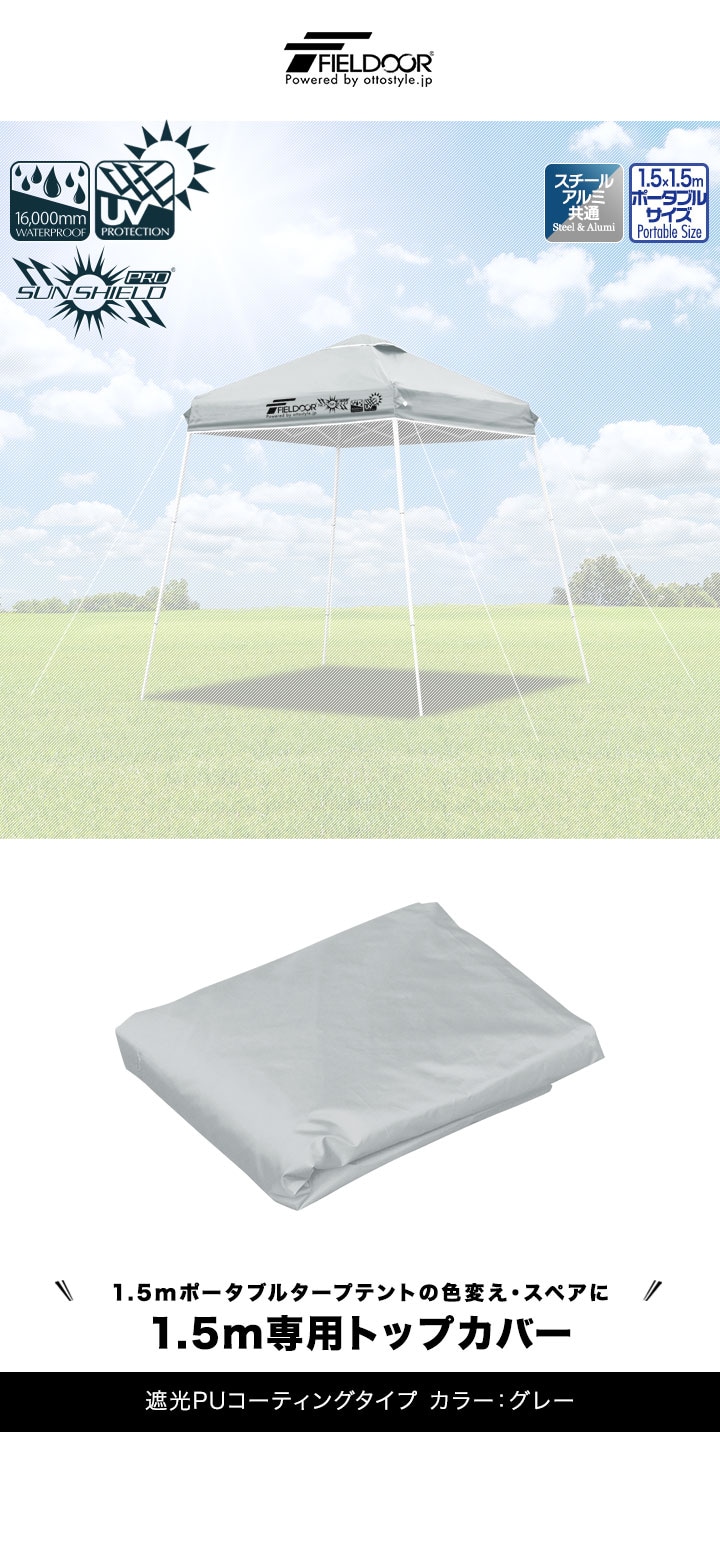 FIELDOOR ポータブルタープ 1.5m 専用トップカバー (遮熱遮光PU:グレー) 共通 スチール/アルミ ワンタッチタープテント ポータブルタープテント 1.5m×1.5m用 オプション 交換用 ※交換カバーのみ、※カバーのみ、タープ本体別売 送料無料