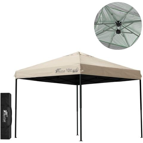 FIELDOOR ワンタッチタープテント 2.5m (遮光遮熱PU:ライトベージュ/スチール/強化版サイドフレーム/4点脚ロック/タープ本体のみ) テント タープ ワンタッチ ワンタッチテント ワンタッチタープ UV加工 撥水 ベンチレーション 収納バッグ付 日よけ キャンプ 送料無料