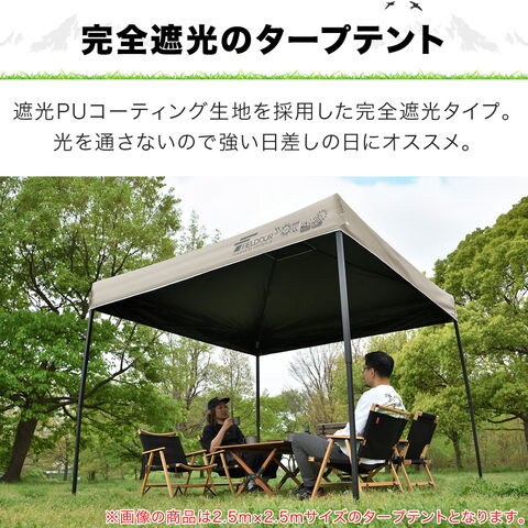 FIELDOOR ワンタッチタープテント 2m (遮光遮熱PU:ライトベージュ/スチール/4点脚ロック/タープ本体のみ) テント タープ ワンタッチ ワンタッチテント ワンタッチタープ UV加工 撥水 ベンチレーション 収納バッグ付 日よけ キャンプ 送料無料