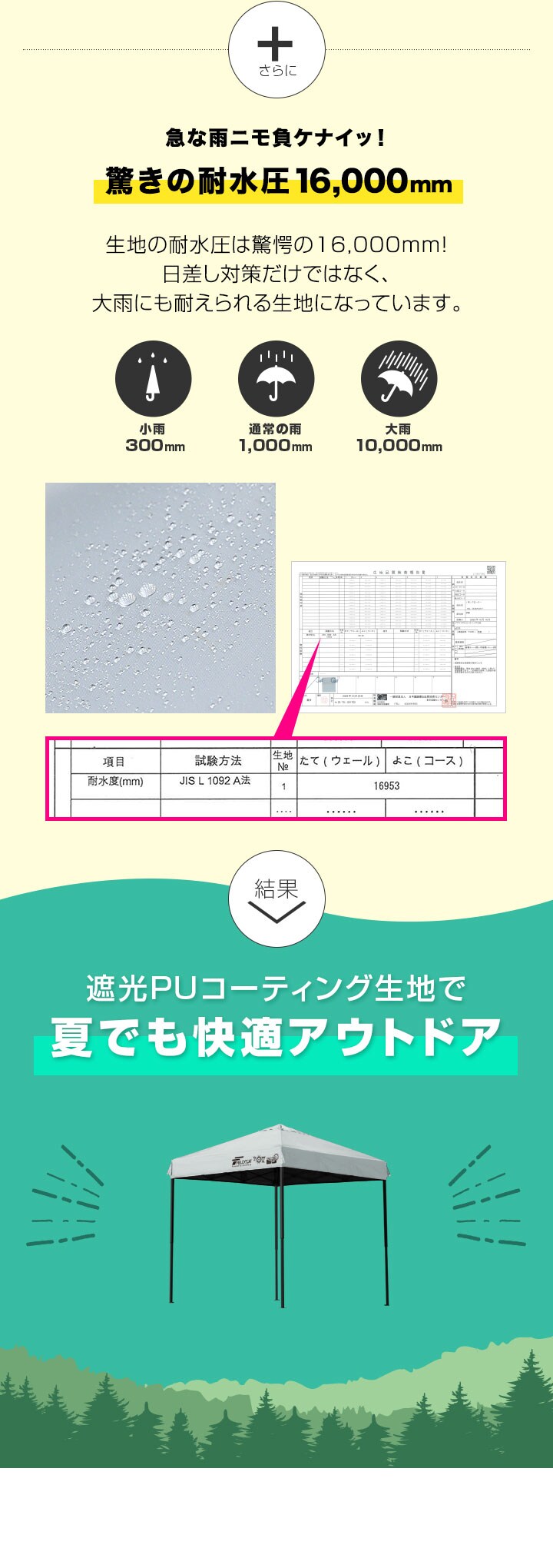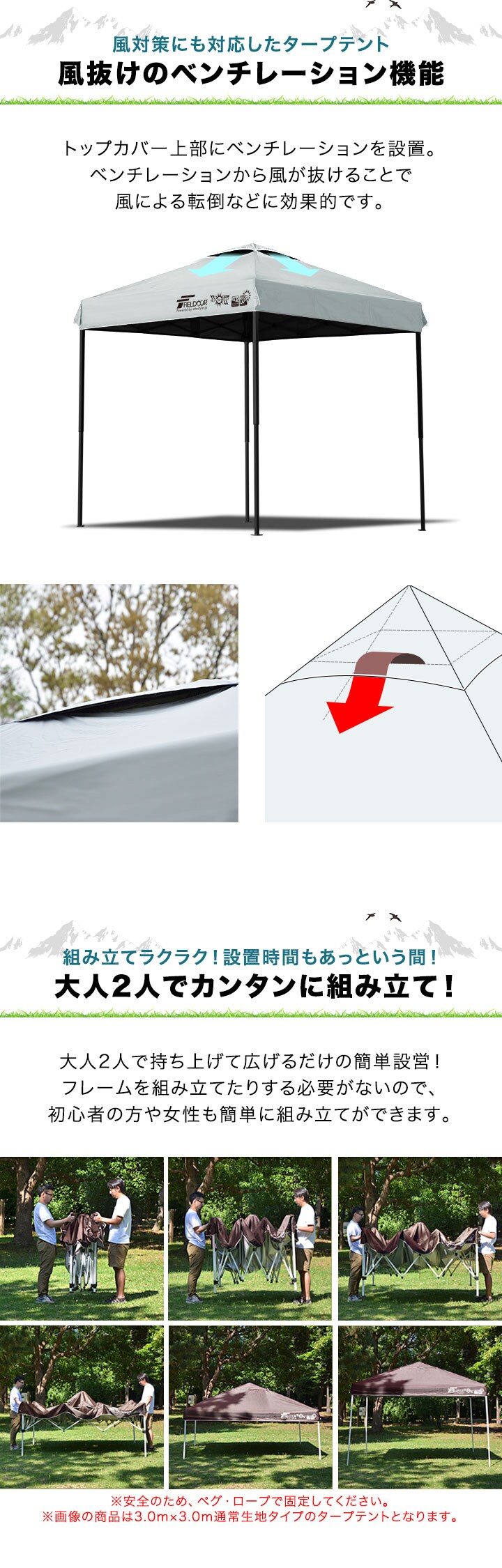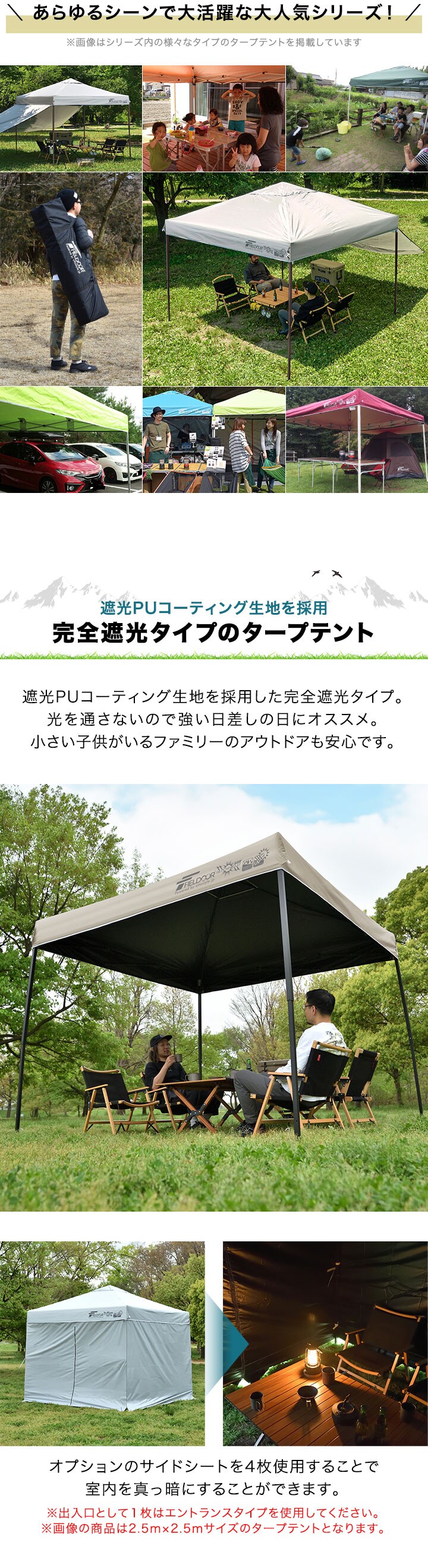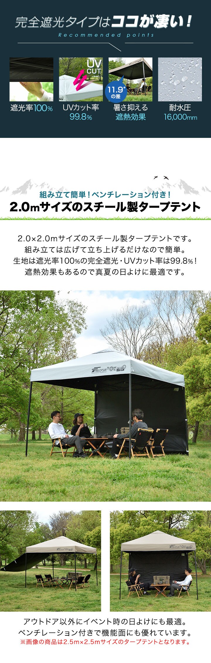 FIELDOOR ワンタッチタープテント 2m (遮光遮熱PU:ライトベージュ/スチール/4点脚ロック/タープ本体のみ/サイドシート1枚付) テント タープ ワンタッチ ワンタッチテント ワンタッチタープ UV加工 撥水 ベンチレーション 収納バッグ付 日よけ キャンプ 送料無料