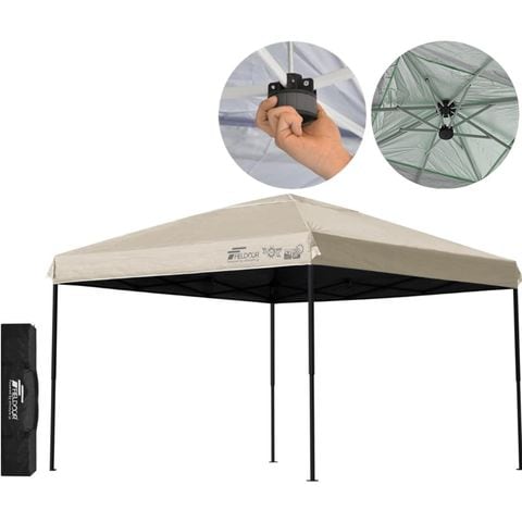 FIELDOOR ワンタッチタープテント 3m (遮光遮熱PU:ライトベージュ/スチール/強化版サイドフレーム/センターロック/タープ本体のみ) テント タープ ワンタッチ ワンタッチテント ワンタッチタープ UV加工 撥水 ベンチレーション 収納バッグ付 日よけ キャンプ 送料無料