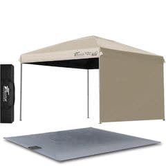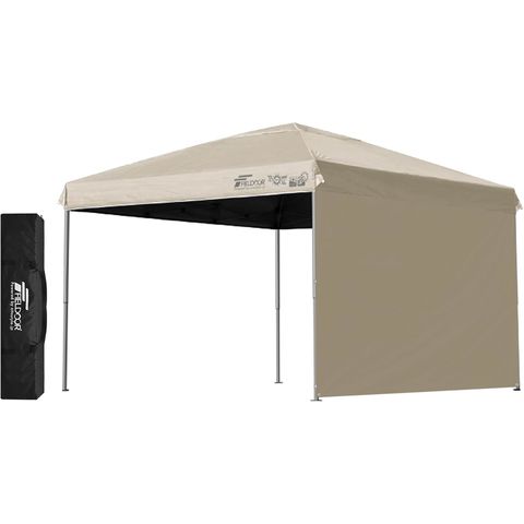 FIELDOOR ワンタッチタープテント 3m (遮光遮熱PU:ライトベージュ/アルミ/4点脚ロック/タープ本体のみ/サイドシート1枚付) 軽量 テント タープ ワンタッチ ワンタッチテント ワンタッチタープ UV加工 撥水 ベンチレーション 収納バッグ付 日よけ キャンプ 送料無料