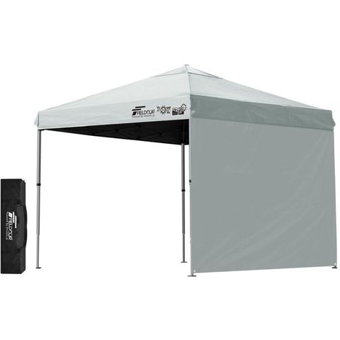 FIELDOOR ワンタッチタープテント 2.5m (遮光遮熱PU:グレー/アルミ/4点脚ロック/タープ本体のみ/サイドシート1枚付) 軽量 テント タープ ワンタッチ ワンタッチテント ワンタッチタープ UV加工 撥水 ベンチレーション 収納バッグ付 日よけ キャンプ 送料無料