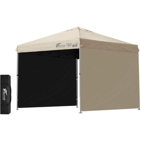 FIELDOOR ワンタッチタープテント 2.5m (遮光遮熱PU:ライトベージュ/アルミ/4点脚ロック/タープ本体のみ/サイドシート2枚付) 軽量 テント タープ ワンタッチ ワンタッチテント ワンタッチタープ UV加工 撥水 ベンチレーション 収納バッグ付 日よけ キャンプ 送料無料