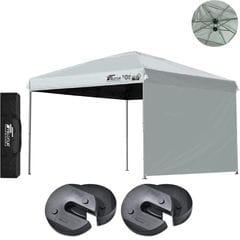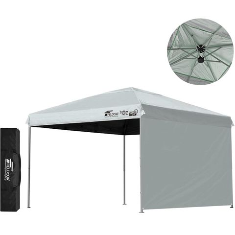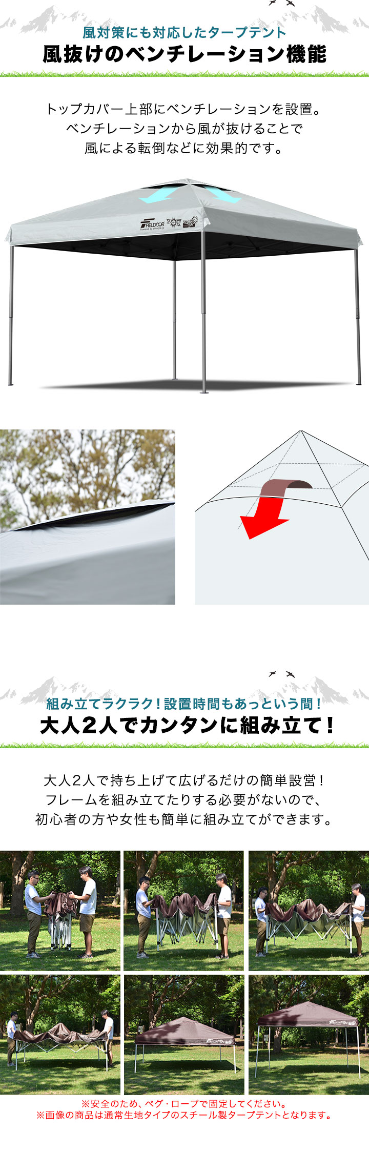 FIELDOOR ワンタッチタープテント 3m (遮光遮熱PU:グレー/アルミ/強化版サイドフレーム/4点脚ロック/タープ本体のみ/サイドシート1枚付) 軽量 テント タープ ワンタッチテント ワンタッチタープ UV加工 撥水 ベンチレーション 収納バッグ付 日よけ キャンプ 送料無料