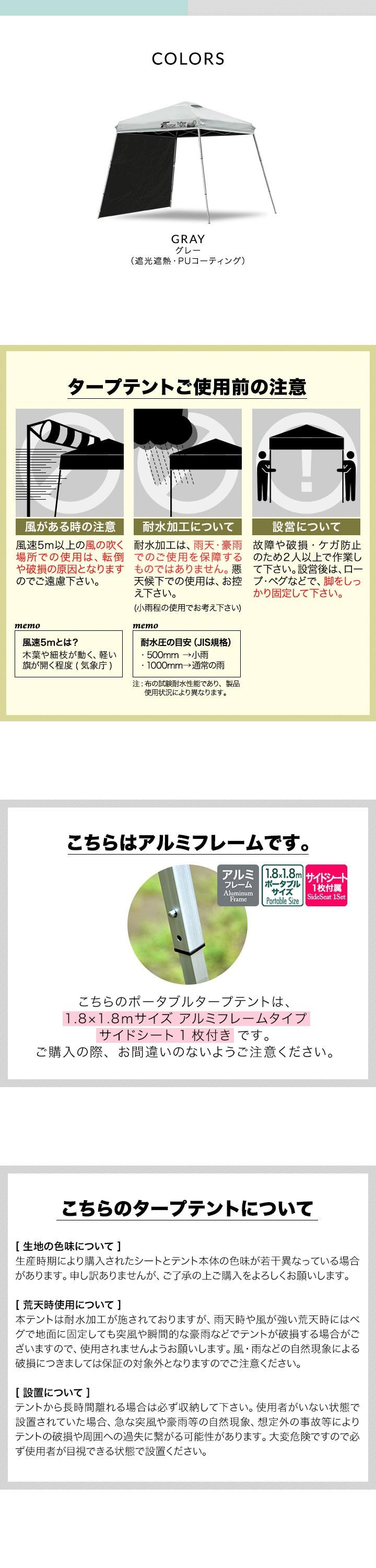 | 商品詳細(タープテント) |