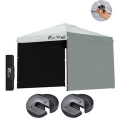 FIELDOOR ワンタッチタープテント 2.5m (遮光遮熱PU:グレー/スチール/センターロック/タープ本体のみ/サイドシート2枚付) テント タープ ワンタッチ ワンタッチテント ワンタッチタープ UV加工 撥水 ベンチレーション 収納バッグ付 日よけ キャンプ 送料無料