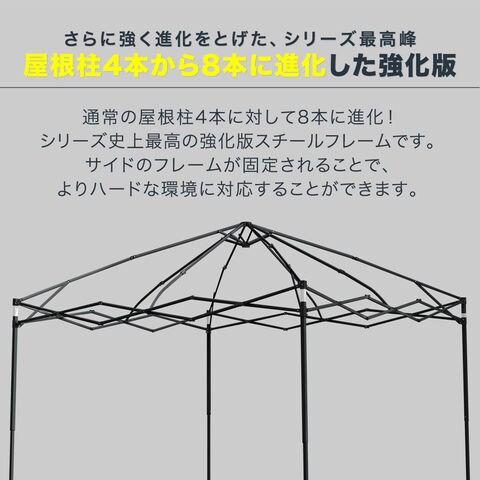 | サイズ: 組立時 :(約)2.5m×2.5m×1.65m / 2.37m / 2.45m 収納時 : (約)22cm×22cm×114cm |