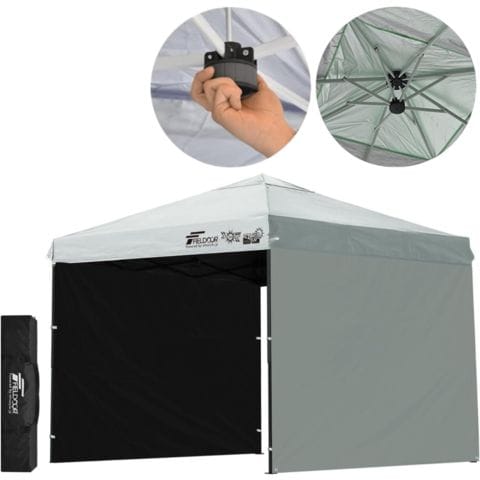 FIELDOOR ワンタッチタープテント 2.5m (遮光遮熱PU:グレー/スチール/強化版サイドフレーム/センターロック/タープ本体のみ/サイドシート2枚付) テント タープ ワンタッチテント ワンタッチタープ UV加工 撥水 ベンチレーション 日よけ キャンプ 送料無料