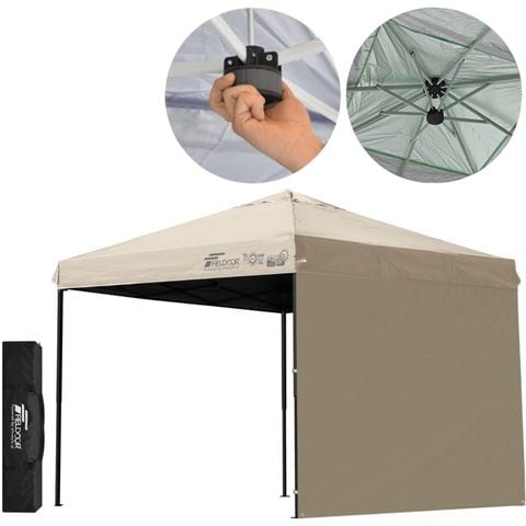 FIELDOOR ワンタッチタープテント 2.5m (遮光遮熱PU:ライトベージュ/スチール/強化版サイドフレーム/センターロック/タープ本体のみ/サイドシート1枚付) テント タープ ワンタッチテント ワンタッチタープ UV加工 撥水 ベンチレーション 日よけ キャンプ 送料無料