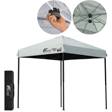 FIELDOOR ワンタッチタープテント 2m (遮光遮熱PU:グレー/スチール/強化版サイドフレーム/センターロック/タープ本体のみ/サイドシート1枚付) テント タープ ワンタッチテント ワンタッチタープ UV加工 撥水 ベンチレーション 日よけ キャンプ 送料無料