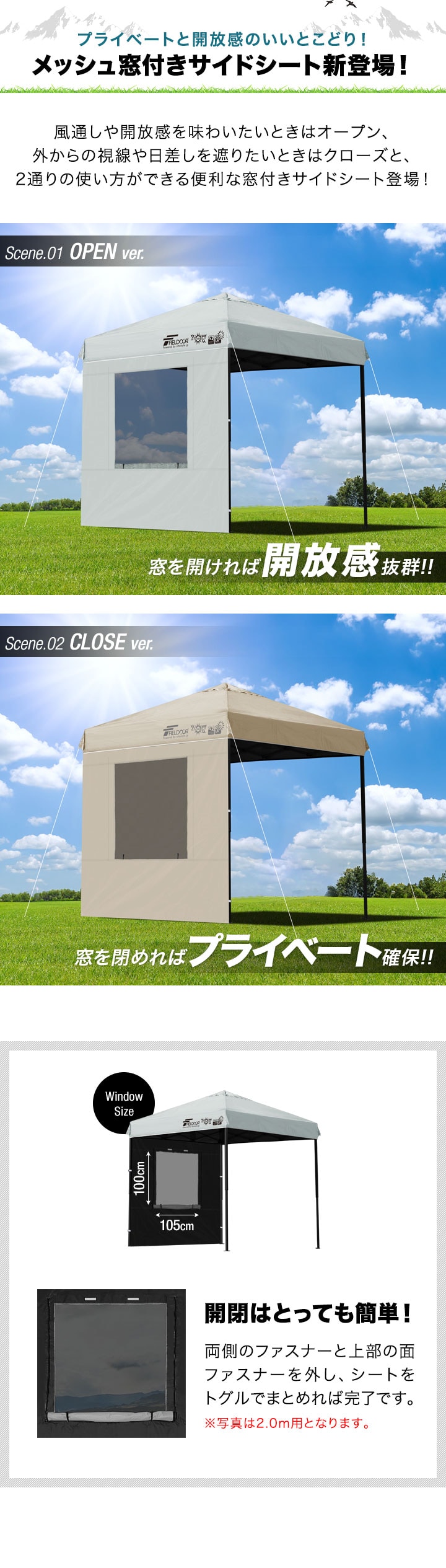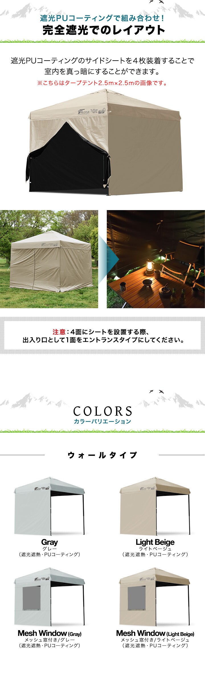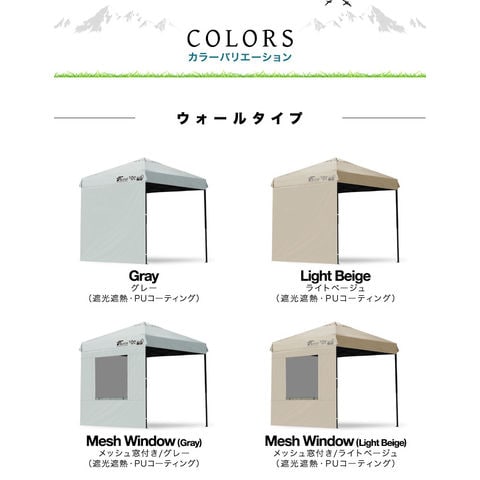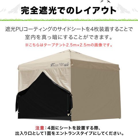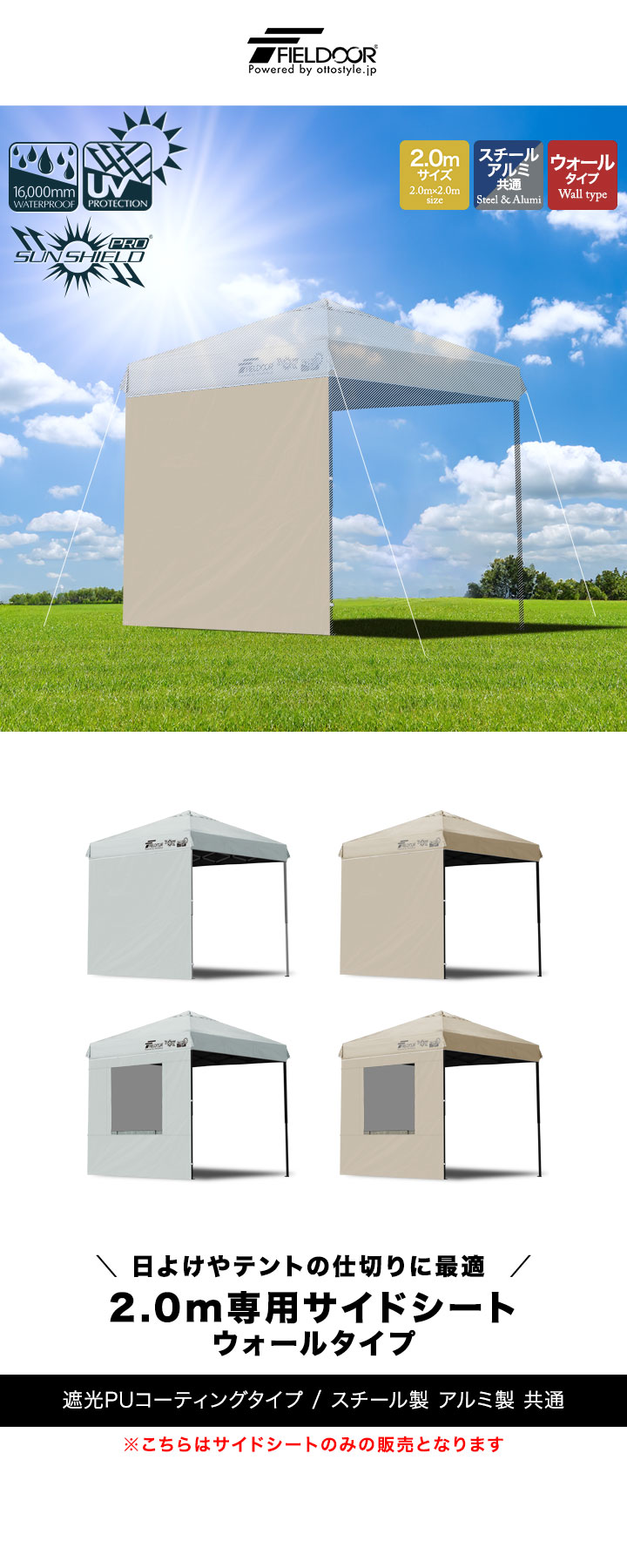 FIELDOOR ワンタッチタープ 2m専用 (ウォール:ノーマル/1枚単品/完全遮光PU:ライトベージュ) サイドシート 横幕 2m 200cm ウォールスクリーン 追加オプション ワンタッチタープ専用 日よけ 目隠し シェード ※タープテント本体別売 送料無料
