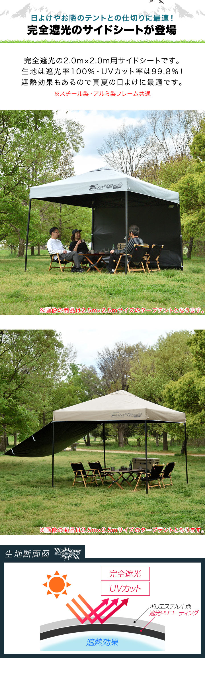 FIELDOOR ワンタッチタープ 2m専用 (ウォール:ノーマル/1枚単品/完全遮光PU:ライトベージュ) サイドシート 横幕 2m 200cm ウォールスクリーン 追加オプション ワンタッチタープ専用 日よけ 目隠し シェード ※タープテント本体別売 送料無料のレビュー