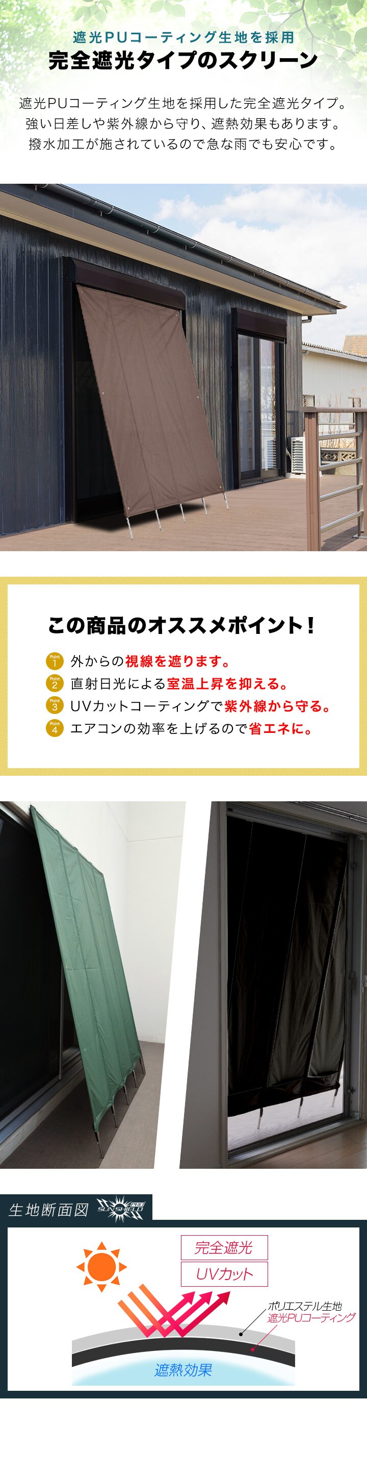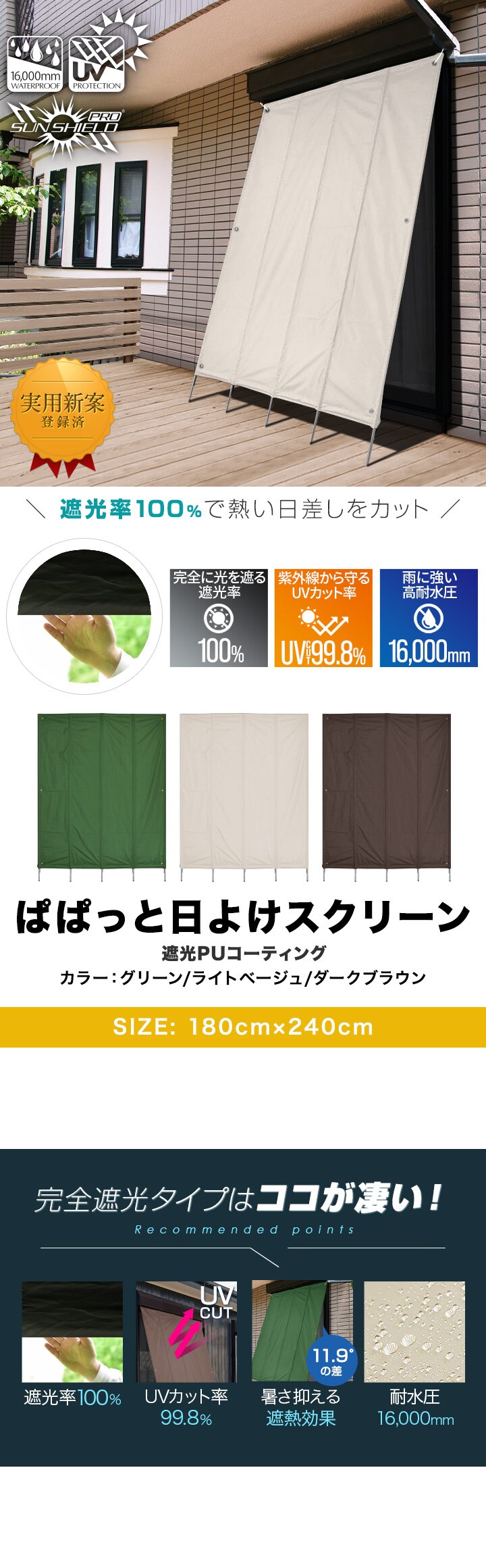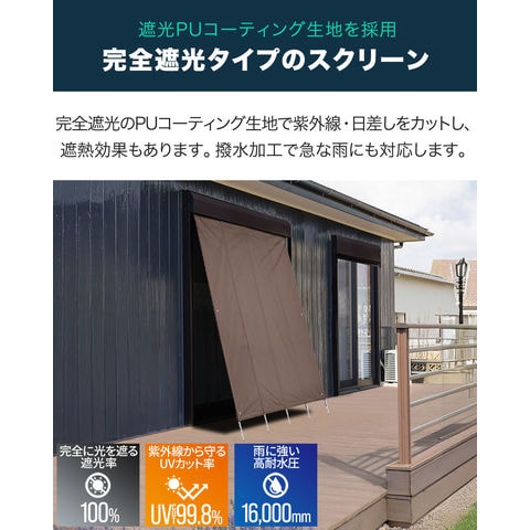 日よけスクリーン 幅1.8×丈2.4m (遮光高耐水:ダークブラウン/日よけ本体のみ) ぱぱっと日よけスクリーン 日よけ サンシェード 日よけスクリーン ポール付 立てかけるだけの簡単設置 シェード 日除け UVカット 撥水 西日対策 おしゃれ たてす よしず 送料無料