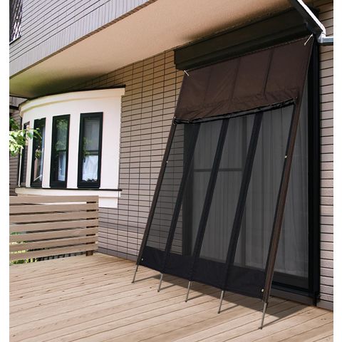 日よけスクリーン 幅1.8×丈2.4m (遮光高耐水:ダークブラウン/日よけ本体のみ) ぱぱっと日よけスクリーン ファスナー巻き上げ/メッシュ 2段幕 ポール付 日よけ サンシェード 日よけスクリーン 簡単設置 シェード UVカット 撥水 西日 おしゃれ たてす よしず 送料無料
