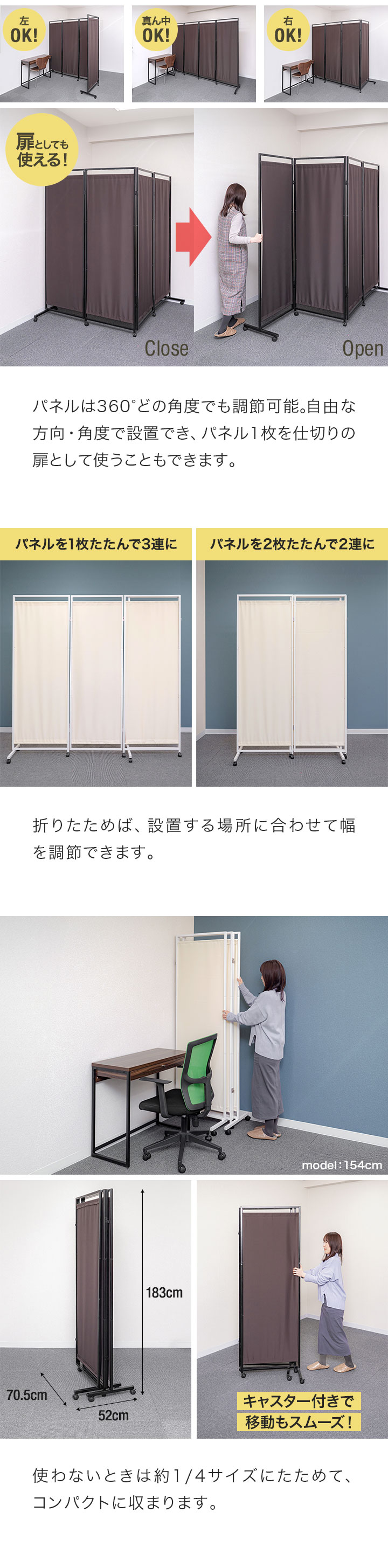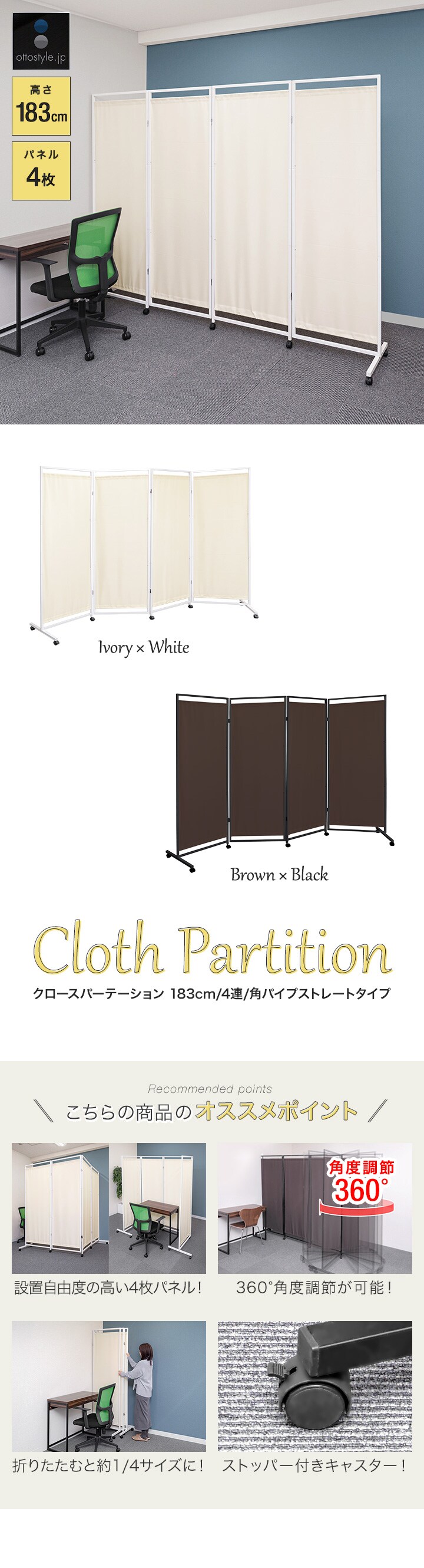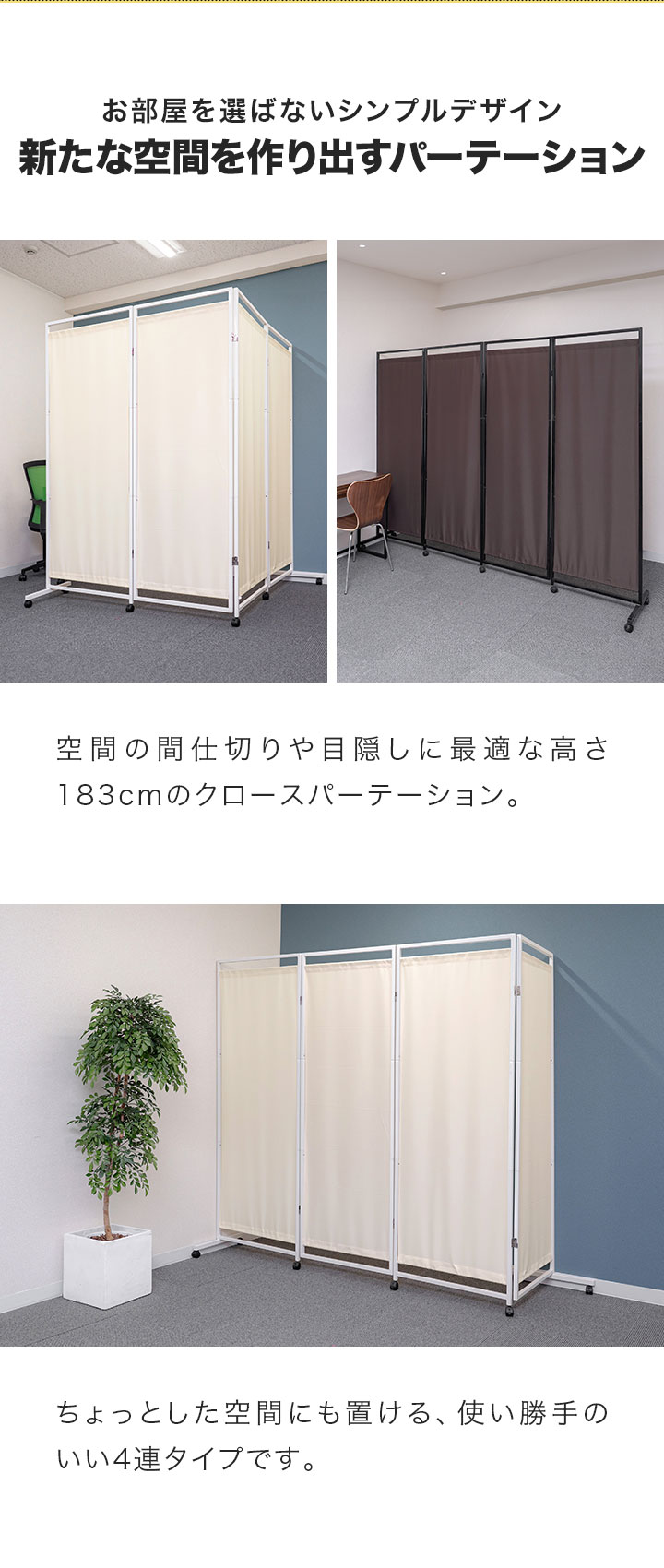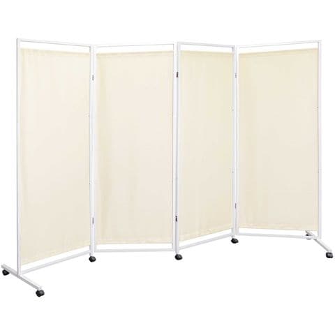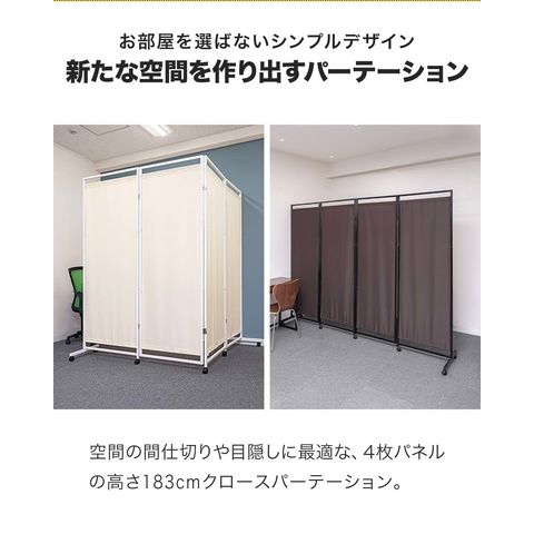 パーテーション 間仕切り 可動式 (アイボリー×ホワイト) 高さ183cm 4連 キャスター脚 自立 360度 折りたたみ 仕切り スクリーン 布張り 衝立 4面 4枚 四つ折り 波型 目隠し ついたて オフィス 壁 おしゃれ 組み立て 簡単 パーティション クロスパーテーション 送料無料