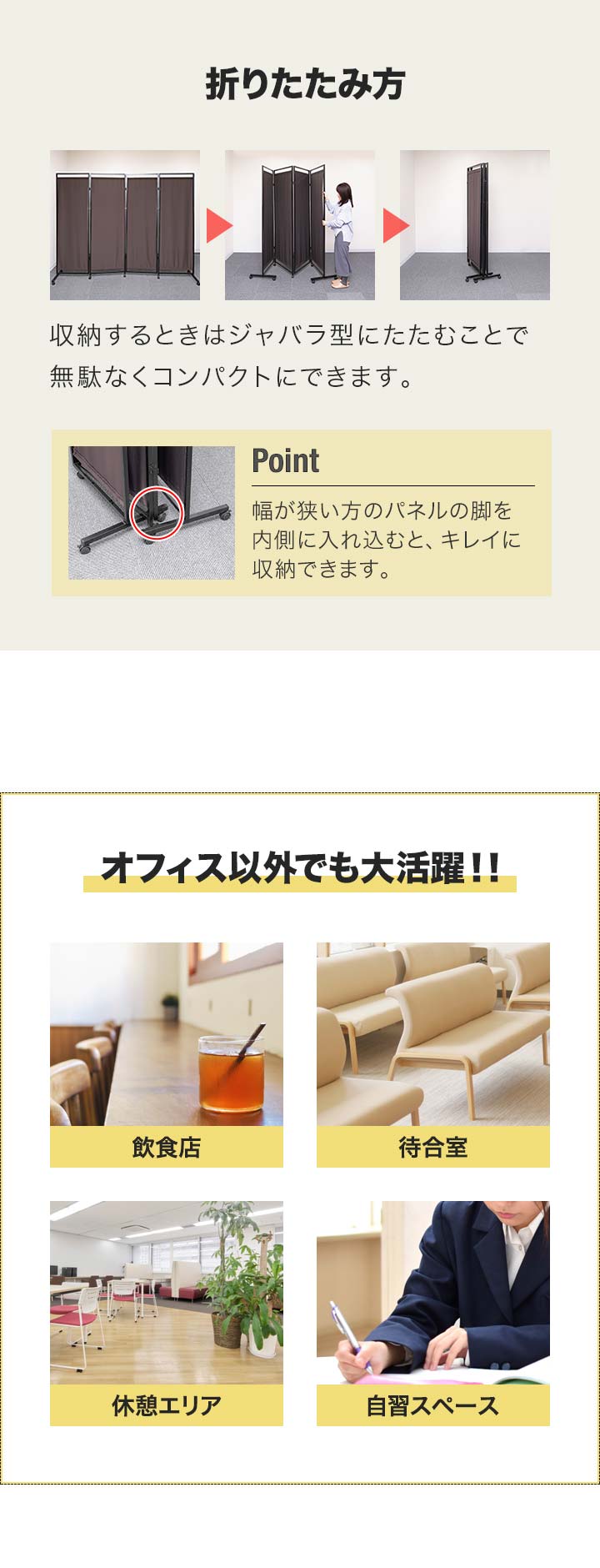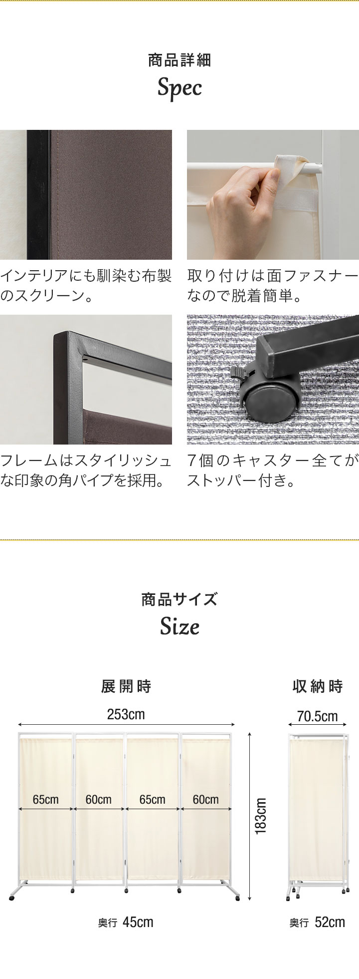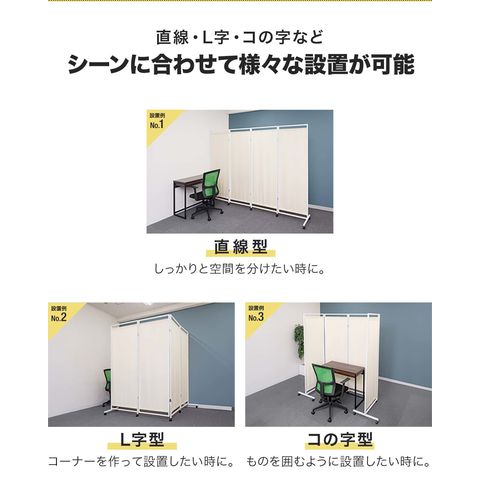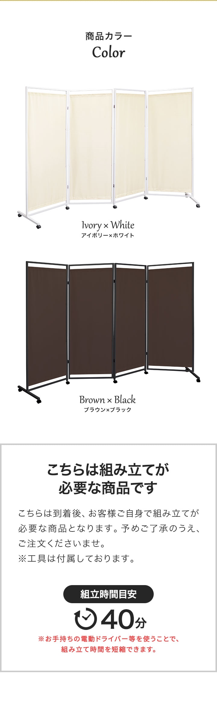 パーテーション 間仕切り 可動式 (アイボリー×ホワイト) 高さ183cm 4連 キャスター脚 自立 360度 折りたたみ 仕切り スクリーン 布張り 衝立 4面 4枚 四つ折り 波型 目隠し ついたて オフィス 壁 おしゃれ 組み立て 簡単 パーティション クロスパーテーション 送料無料