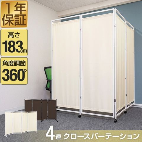 パーテーション 間仕切り 可動式 (アイボリー×ホワイト) 高さ183cm 4連 キャスター脚 自立 360度 折りたたみ 仕切り スクリーン 布張り 衝立 4面 4枚 四つ折り 波型 目隠し ついたて オフィス 壁 おしゃれ 組み立て 簡単 パーティション クロスパーテーション 送料無料