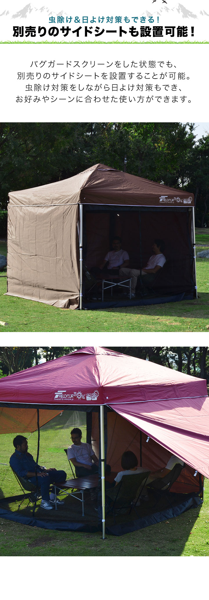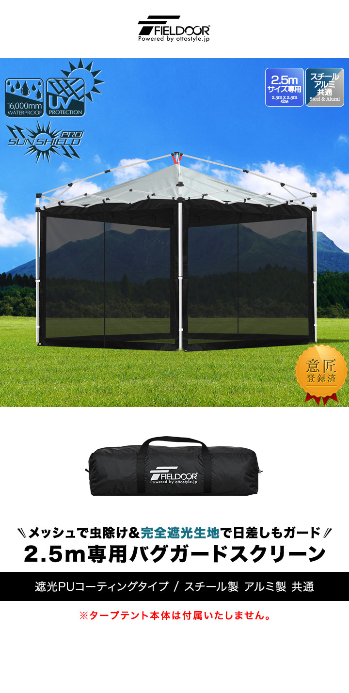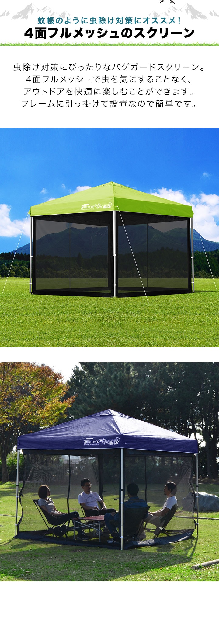 FIELDOOR ワンタッチタープテント用 横幕 サイドシート 2.5m 250cmサイズ バグガードスクリーン 天面遮光/遮熱コーティング 4面 吊り下げ 蚊帳 メッシュ 虫よけサイドシート 虫よけ 網 オプション ※タープテント本体別売 送料無料