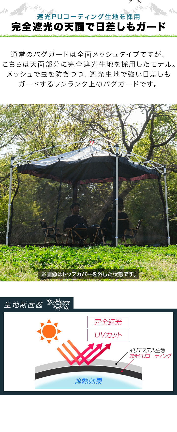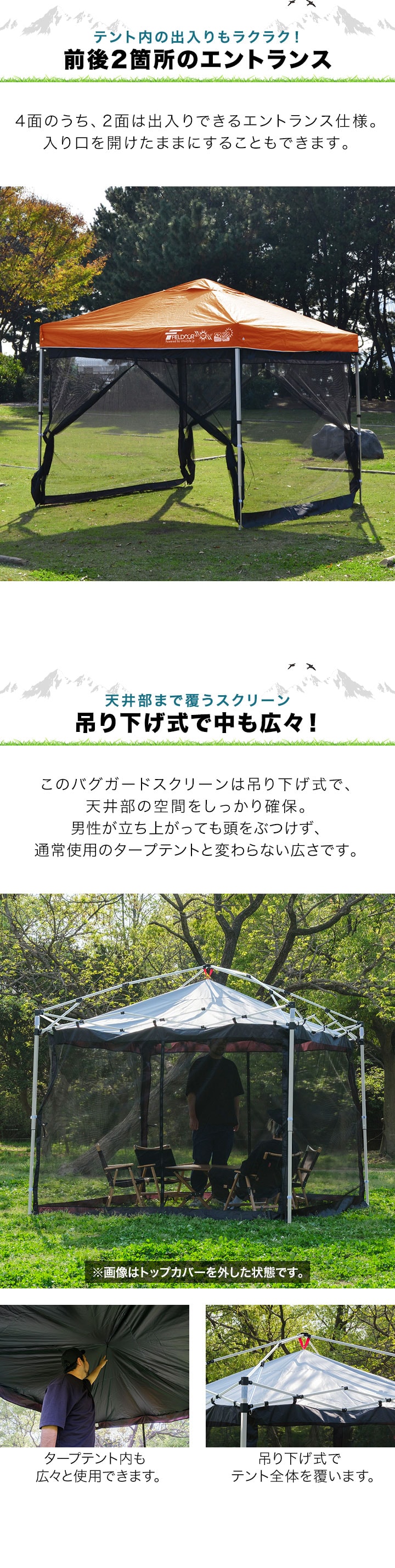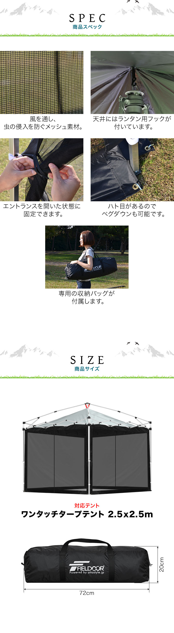 FIELDOOR ワンタッチタープテント用 横幕 サイドシート 2.5m 250cmサイズ バグガードスクリーン 天面遮光/遮熱コーティング 4面 吊り下げ 蚊帳 メッシュ 虫よけサイドシート 虫よけ 網 オプション ※タープテント本体別売 送料無料