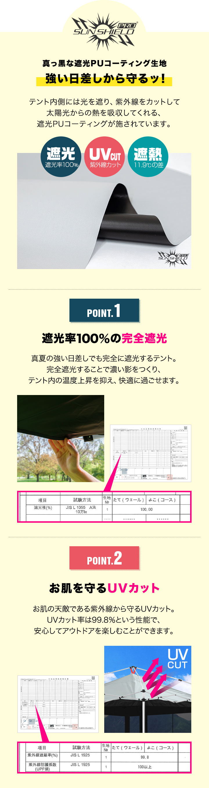 | 耐水圧: 16,000mm ※耐水圧は生地のスペックとしての数値であり、雨の日にトップカバー無しの単体で使用することを想定したものではありません。 |