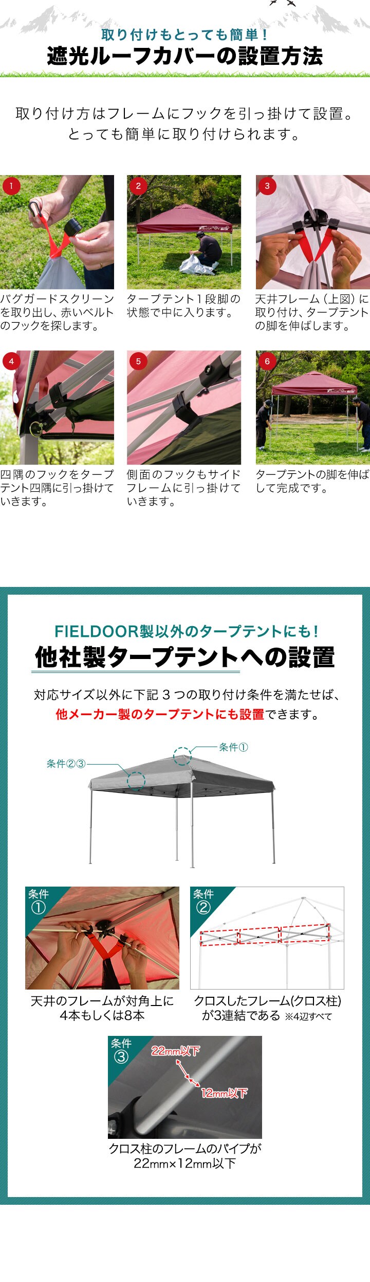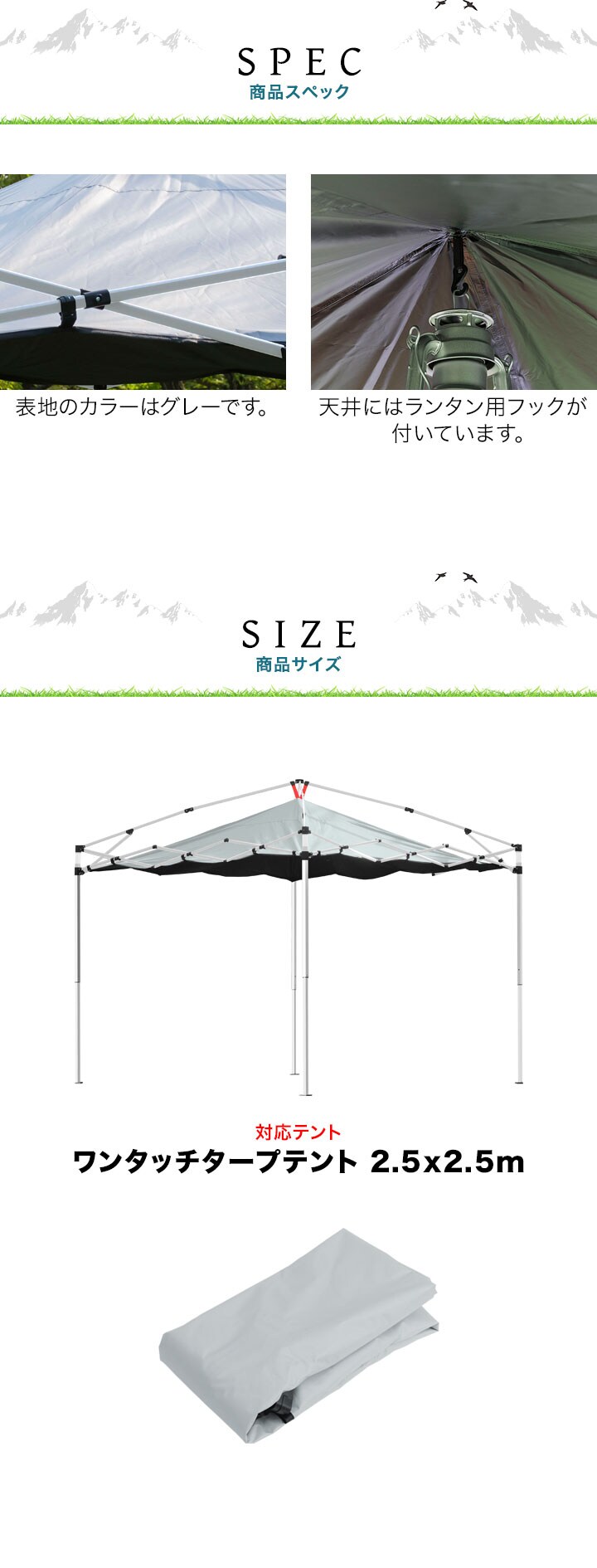 FIELDOOR ワンタッチタープテント用 遮光ルーフカバー 2.5m 250cm サイズ 天面遮光/遮熱コーティング 吊り下げ式 後付け 遮光 追加オプション ワンタッチタープテント専用 日よけ 天井 屋根 シェード ※タープテント本体別売 送料無料