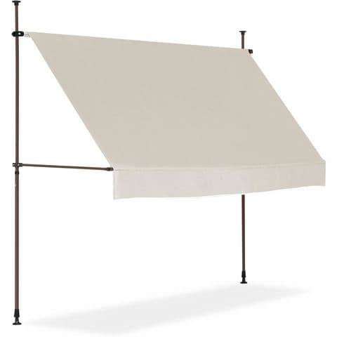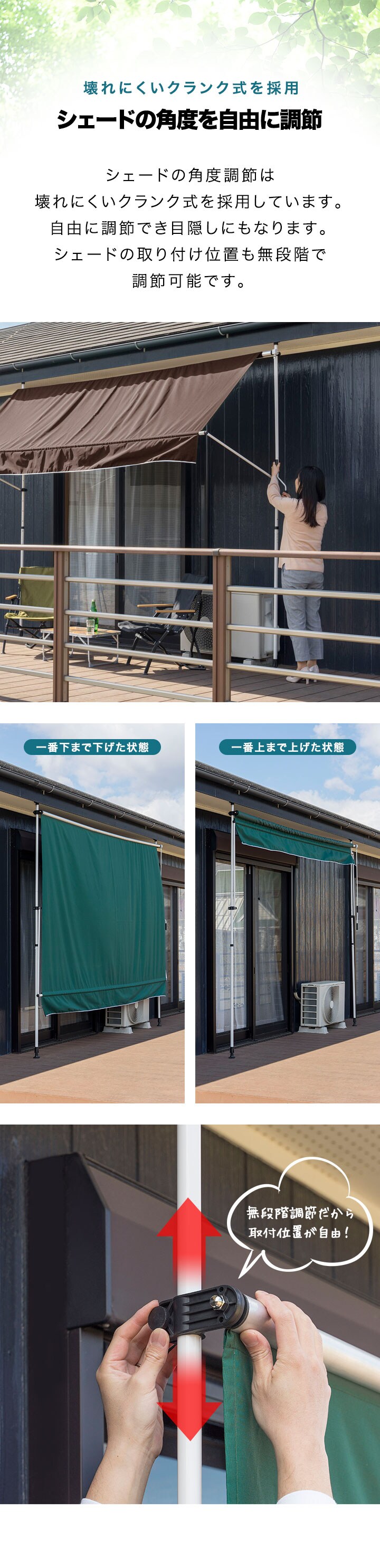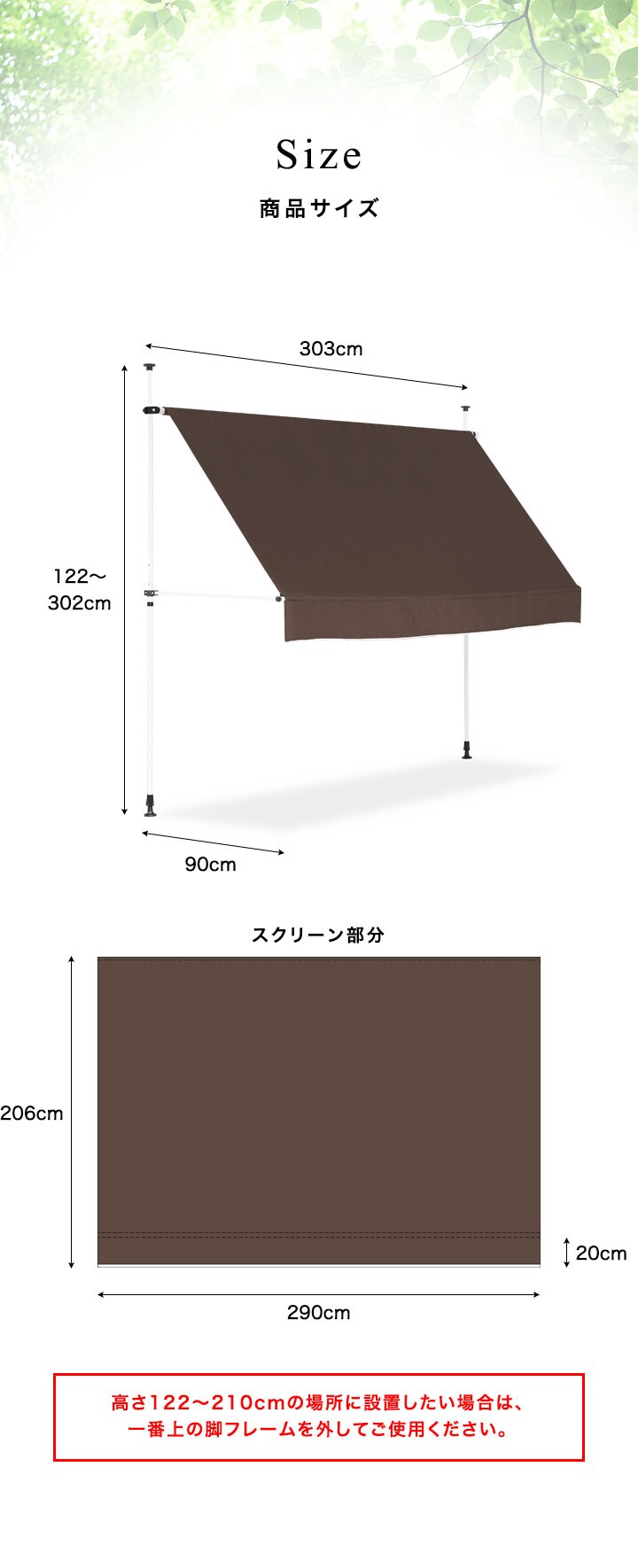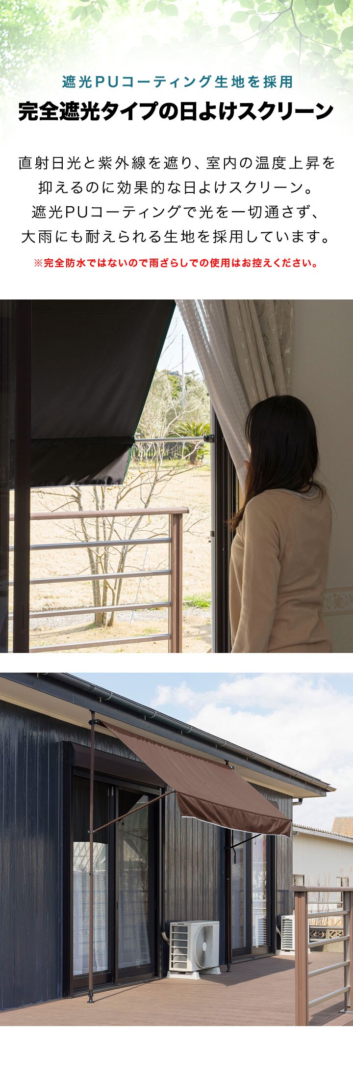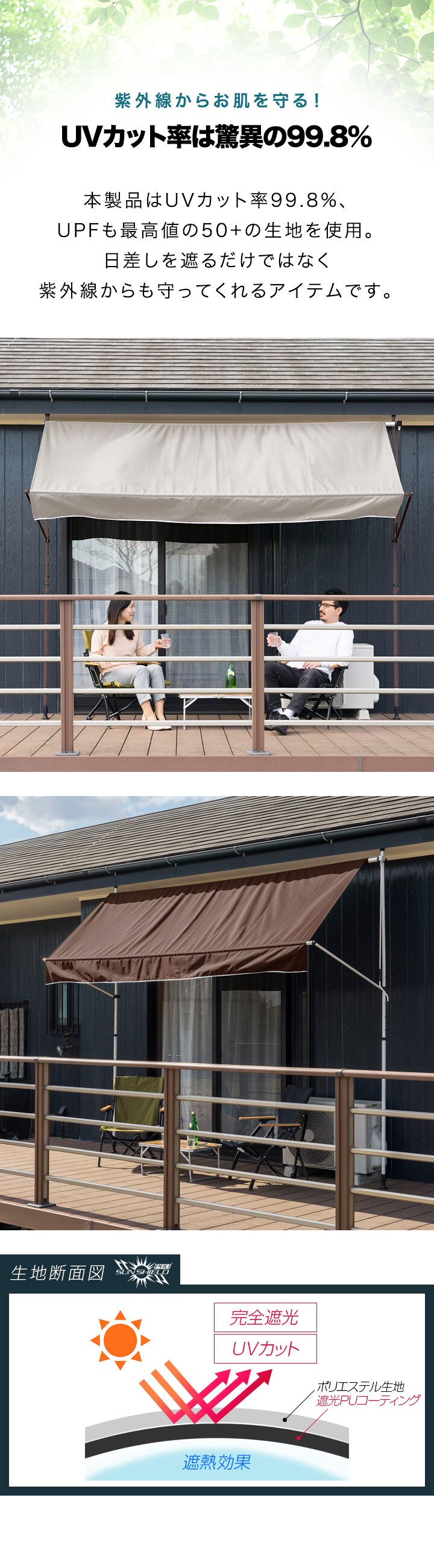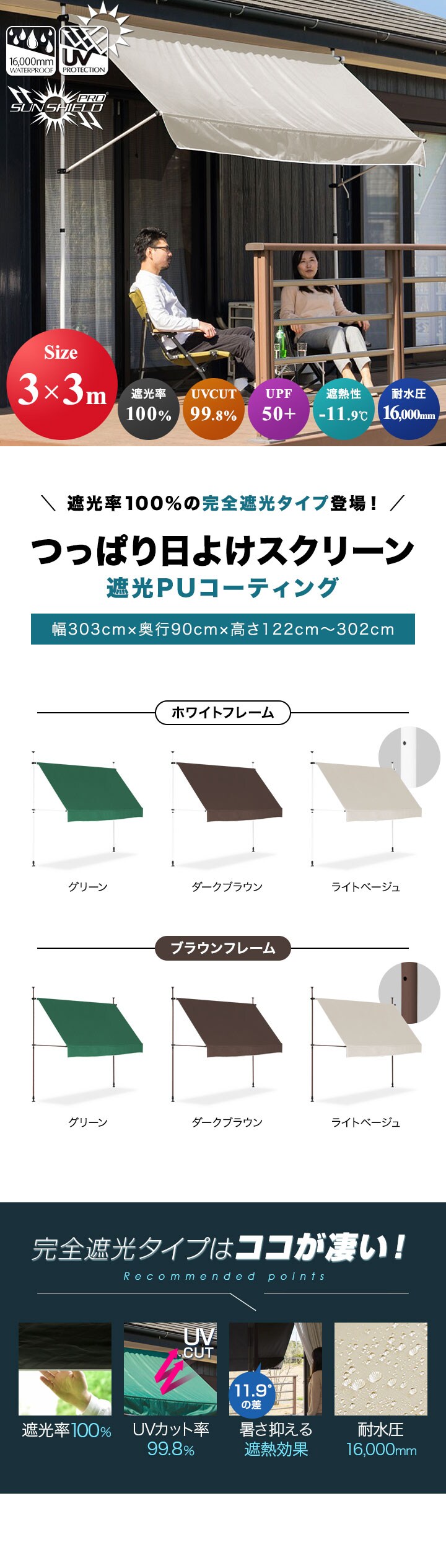 日よけシェード 幅3m (遮光遮熱:ライトベージュ/ブラウンフレーム/本体のみ) つっぱり式 巻き上げ オーニング UVカット 撥水 サンシェード 折りたたみ 目隠し 物干し つっぱり日よけスクリーン 突っ張り棒 日除け 雨よけ おしゃれ よしず すだれ シェード 送料無料