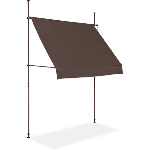 日よけシェード 幅2m (遮光遮熱:ダークブラウン/ブラウンフレーム/本体のみ) つっぱり式 巻き上げ オーニング UVカット 撥水 サンシェード 折りたたみ 目隠し 物干し つっぱり日よけスクリーン 突っ張り棒 日除け 雨よけ おしゃれ よしず すだれ シェード 送料無料