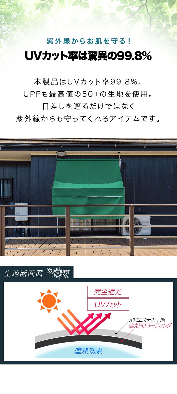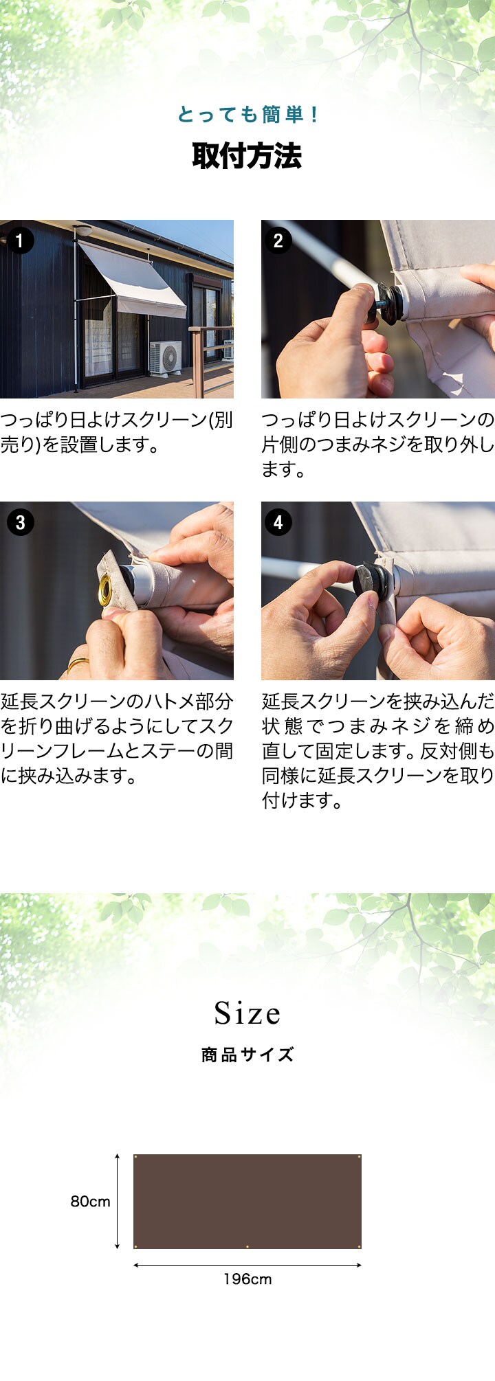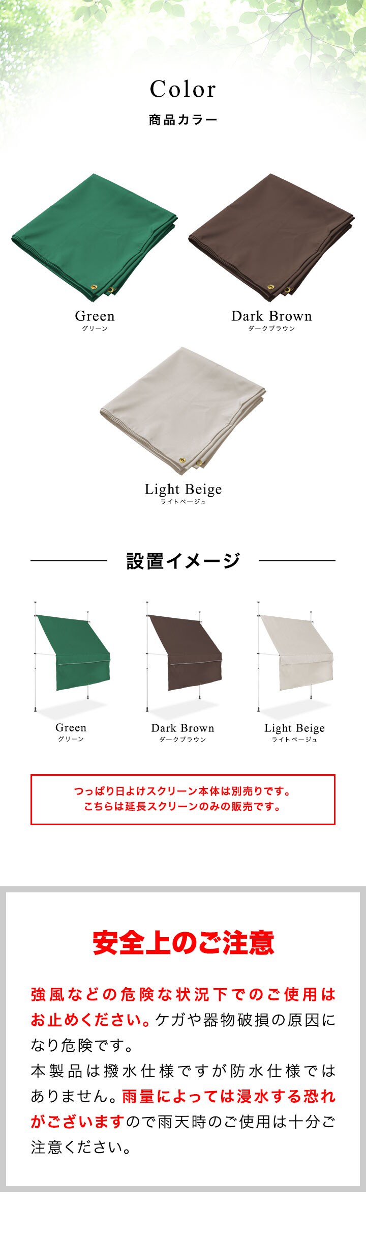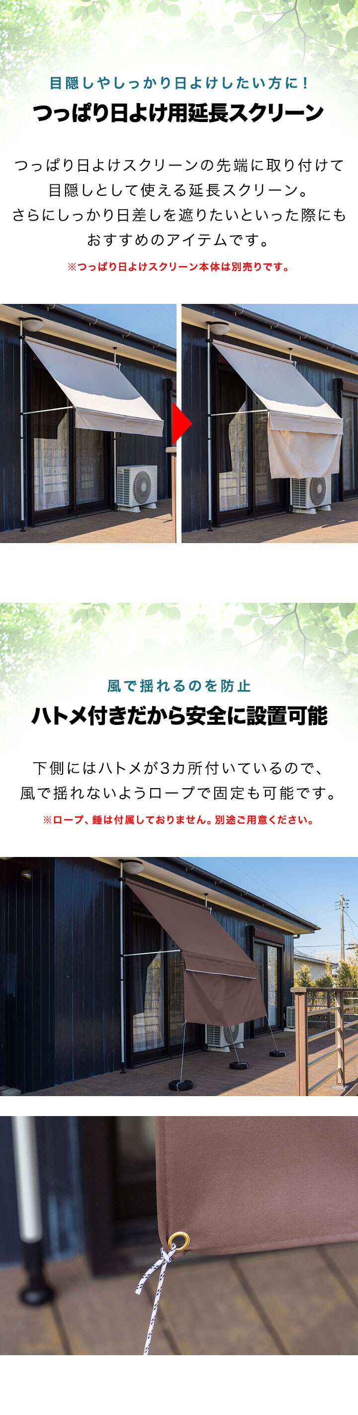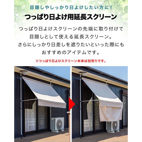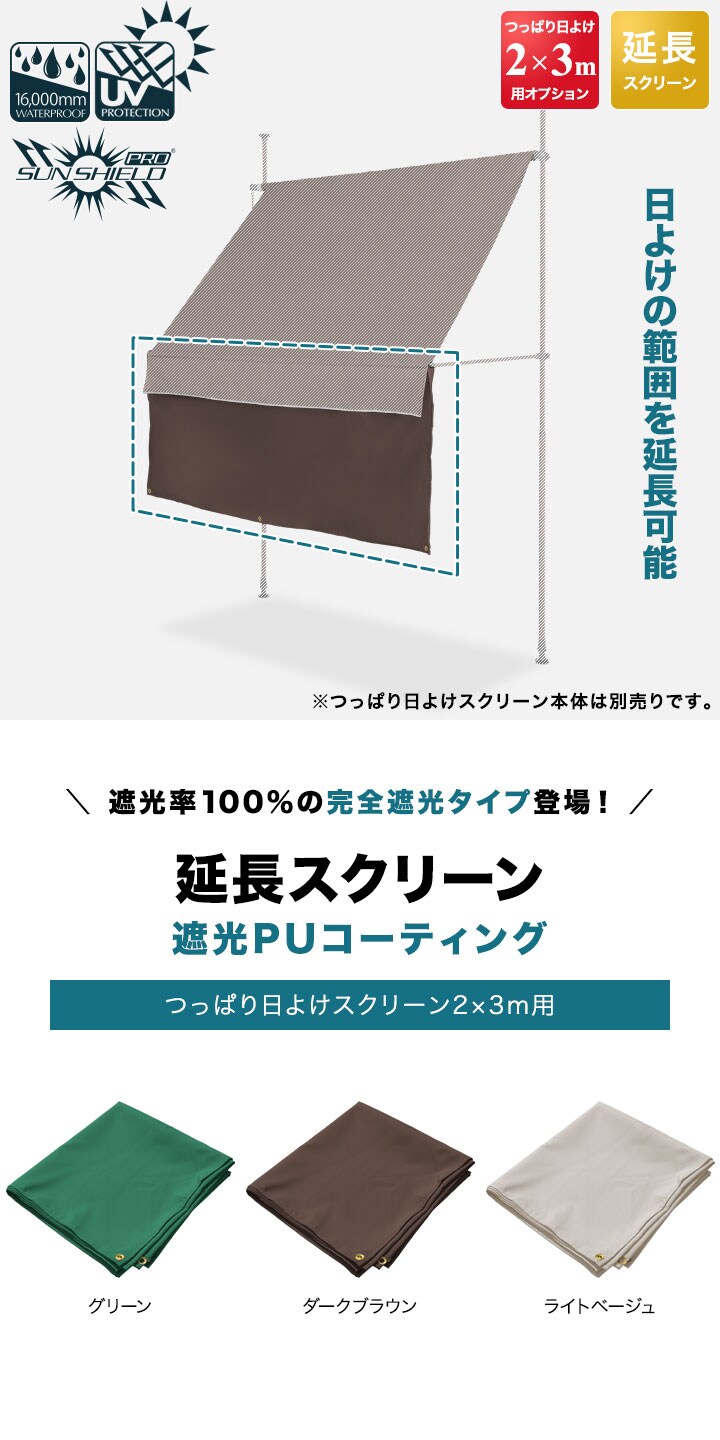つっぱり日よけ 延長スクリーン 幅2mサイズ用 (遮光遮熱:グリーン) 長さ80cm つっぱり日よけスクリーン サンシェード シェード オーニング ※延長用スクリーンのみ/日よけ本体別売 送料無料