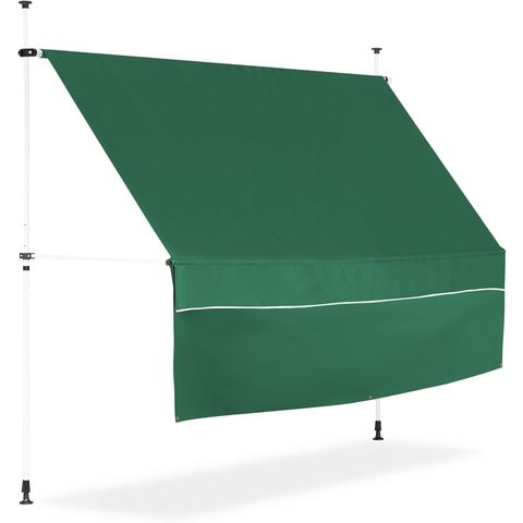 日よけシェード 幅3m (遮光遮熱:グリーン/ホワイトフレーム/本体&前幕付セット) つっぱり式 巻き上げ オーニング UVカット 撥水 サンシェード 折りたたみ 目隠し 物干し つっぱり日よけスクリーン 突っ張り棒 日除け 雨よけ おしゃれ よしず すだれ シェード 送料無料