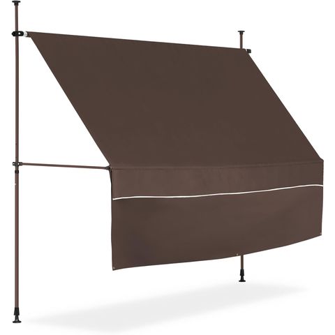 日よけシェード 幅3m (遮光遮熱:ダークブラウン/ブラウンフレーム/本体&前幕付セット) つっぱり式 巻き上げ オーニング UVカット 撥水 サンシェード 折りたたみ 目隠し 物干し つっぱり日よけスクリーン 突っ張り棒 日除け 雨よけ おしゃれ よしず すだれ シェード 送料無料