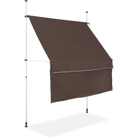 日よけシェード 幅2m (遮光遮熱:ダークブラウン/ホワイトフレーム/本体&前幕付セット) つっぱり式 巻き上げ オーニング UVカット 撥水 サンシェード 折りたたみ 目隠し 物干し つっぱり日よけスクリーン 突っ張り棒 日除け 雨よけ おしゃれ よしず すだれ シェード 送料無料