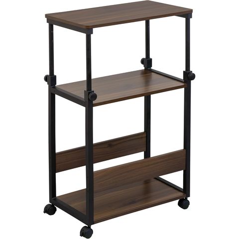 サイドワゴン キャスター付き 昇降式 (ウォールナット/ブラックフレーム) 高さ調節 高さ70cm~95cm 幅35cm スリム サイドデスク 昇降ワゴン PCラック プリンター台 PCワゴン デスクワゴン パソコンラック オフィス収納 L字デスク 袖机 脇机 パソコンワゴン デスク下収納 送料無料