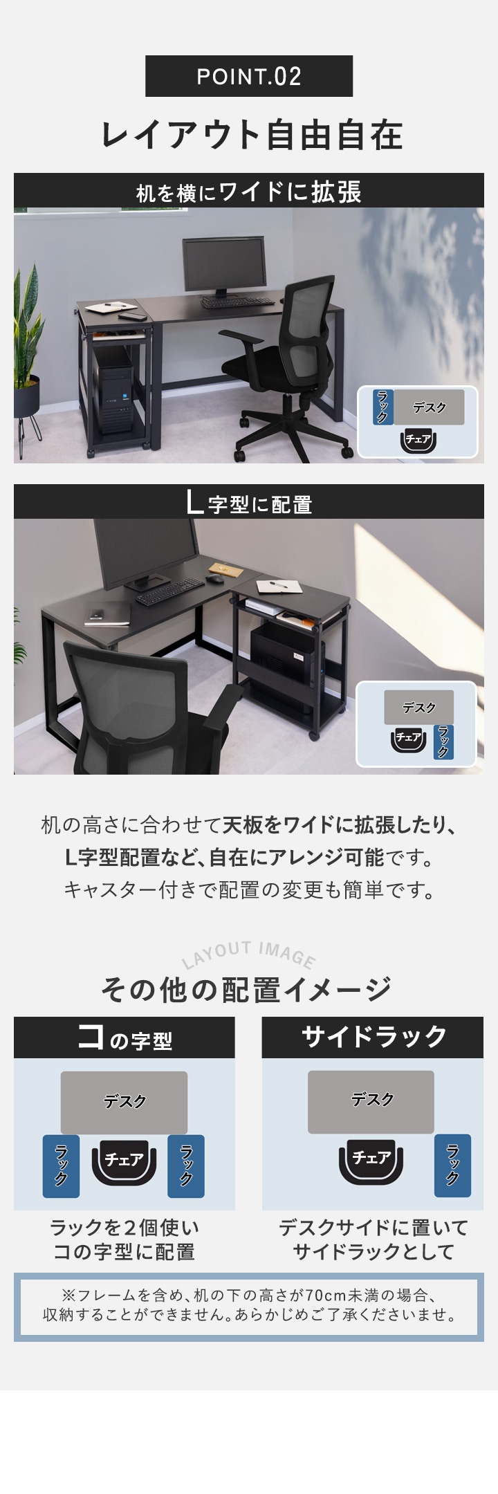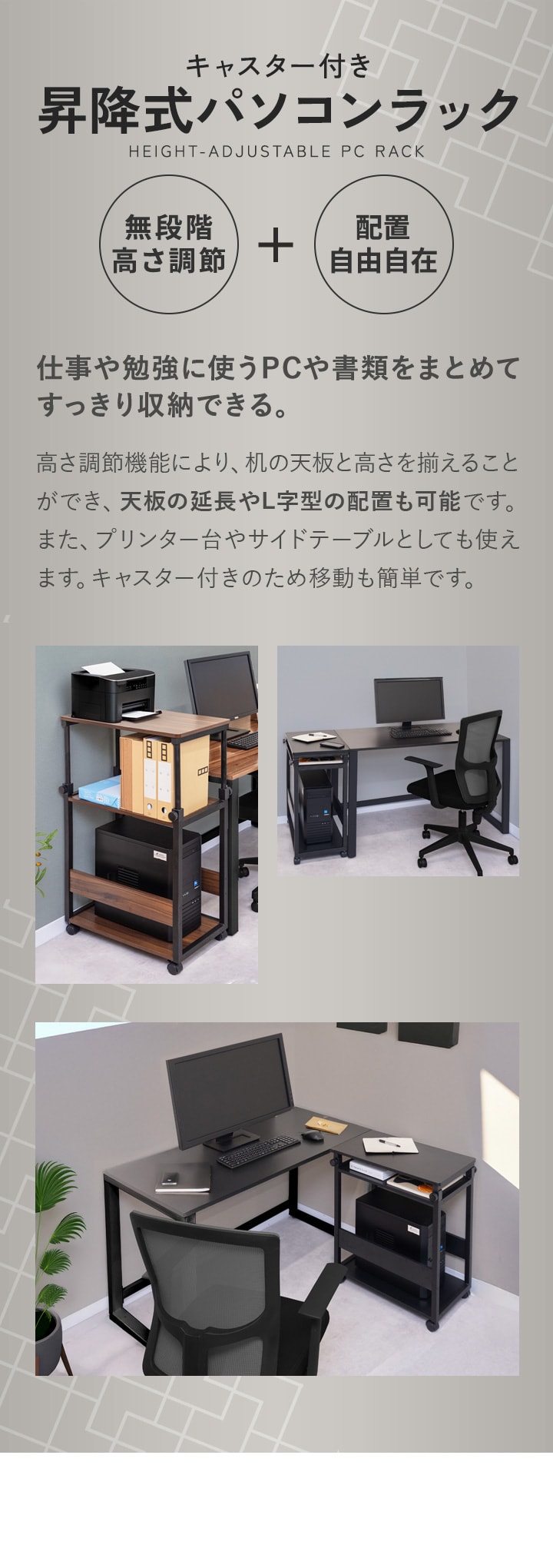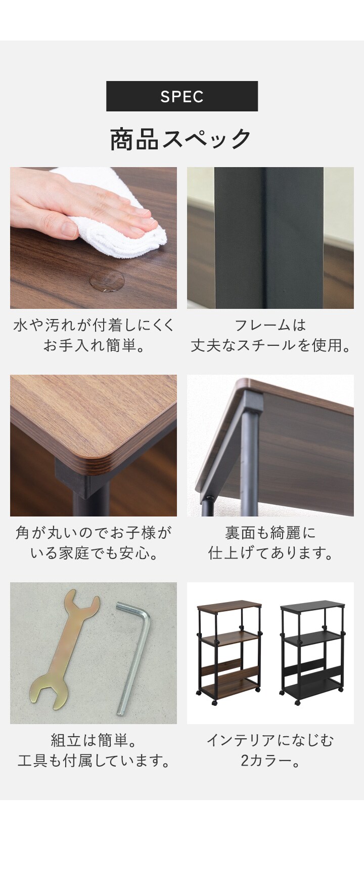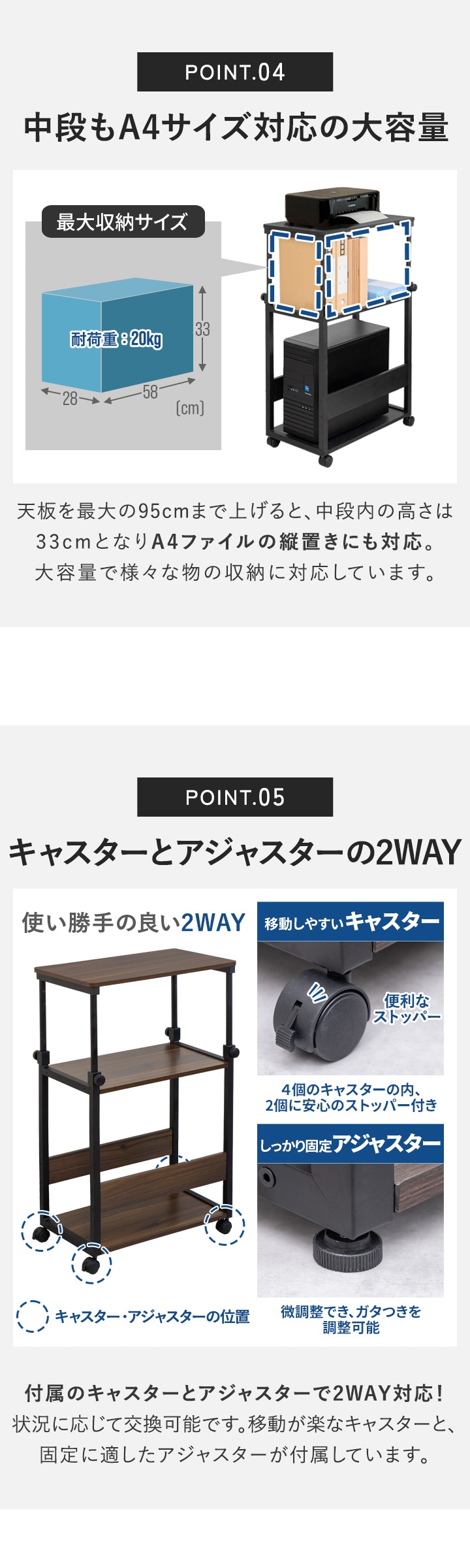 | 付属品: ・キャスター×2個 ・キャスター(ストッパー付き)×2個 ・アジャスター×4個 |