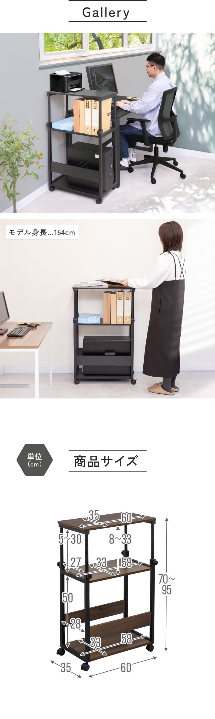 | サイズ: (約)幅35cm×奥行60cm×高さ70~95cm |