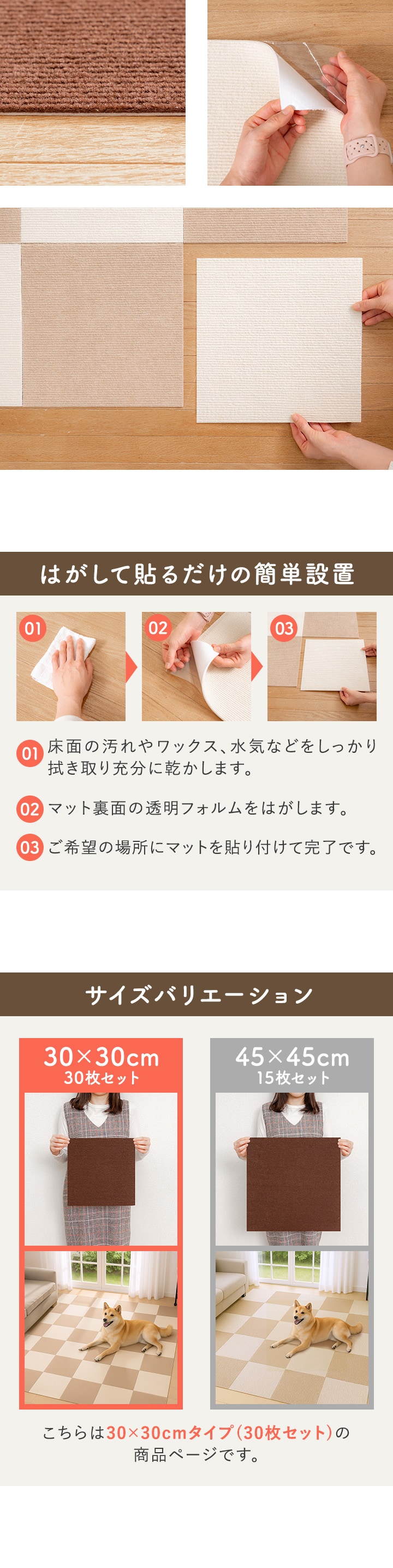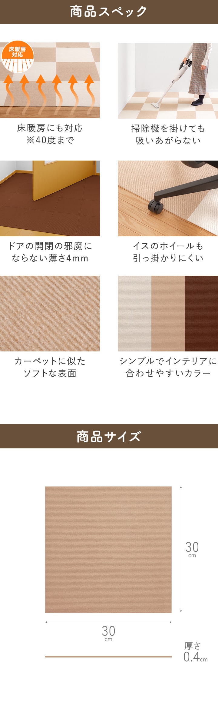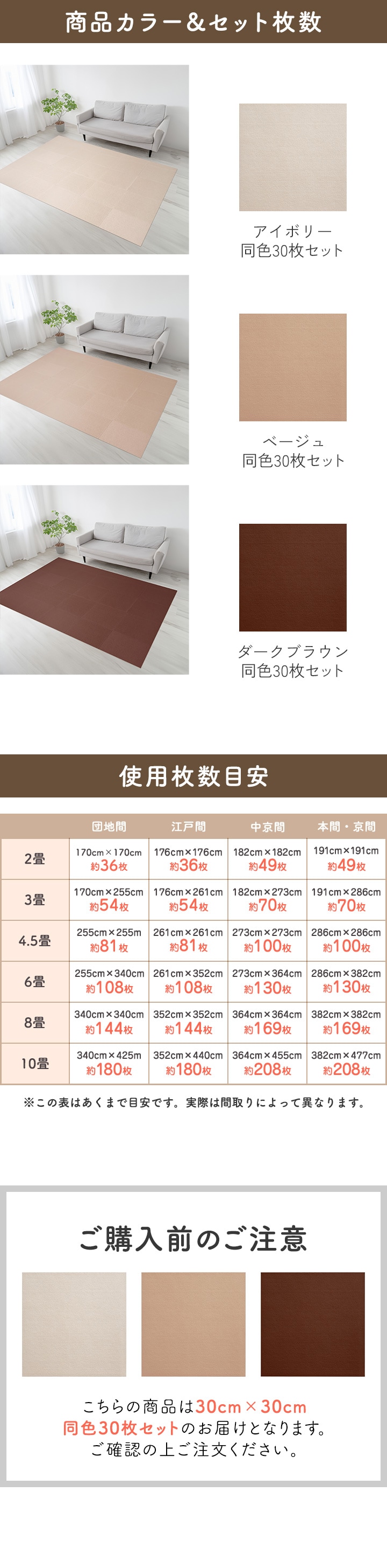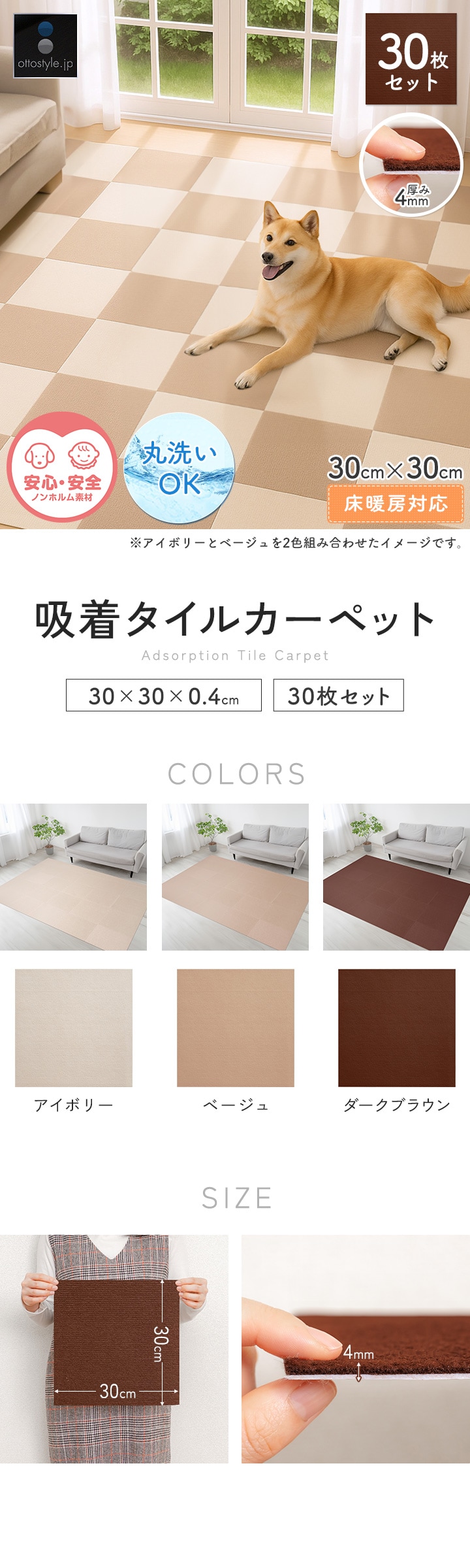 タイルカーペット 30×30cm/厚み4mm 吸着 (ダークブラウン30枚組) タイルマット 洗濯機で洗える 床暖房対応 滑り止め フロアカーペット 子供 犬 猫 ペット 正方形 ジョイントマット 無地 ファブリックフロア ズレない 滑らない 足音対策 送料無料