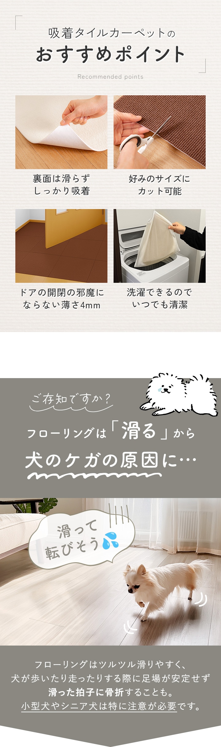 ・当マットが浮き上がっていたり、ずれていたりするとすべる場合があります。 床面にしっかりと吸着していることをご確認の上ご使用ください。