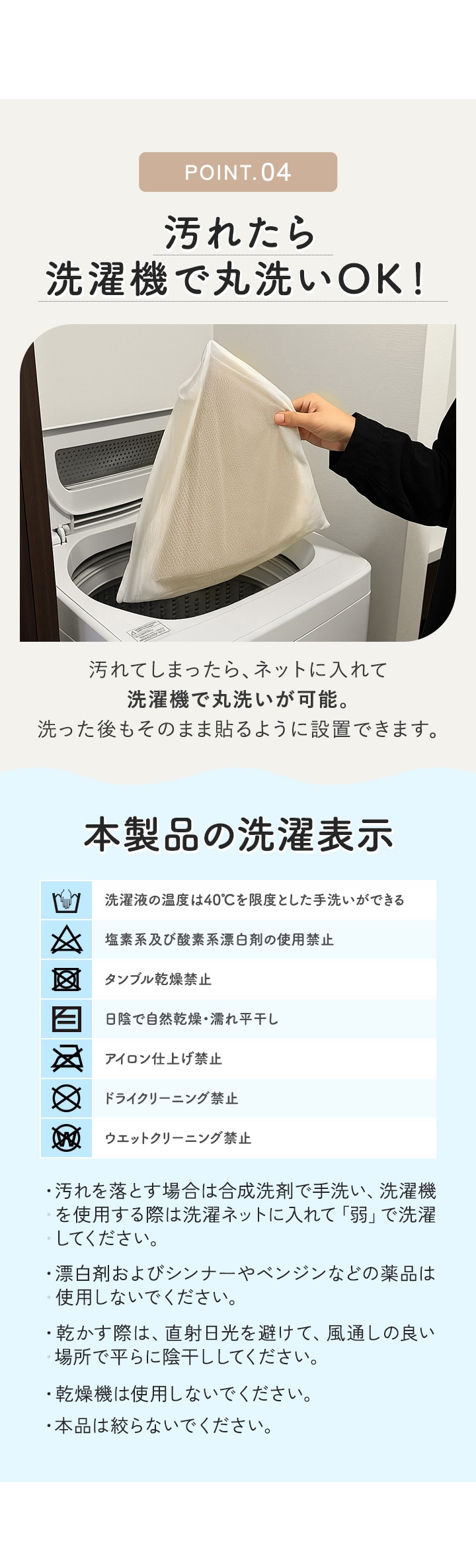 ・アイロンは使用できません。