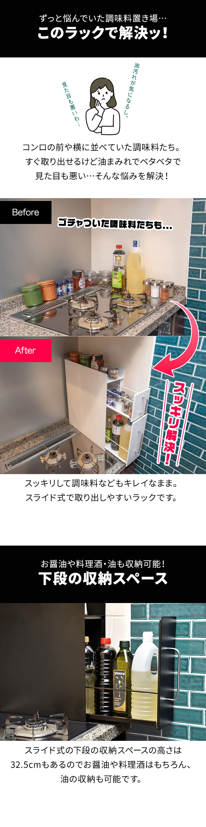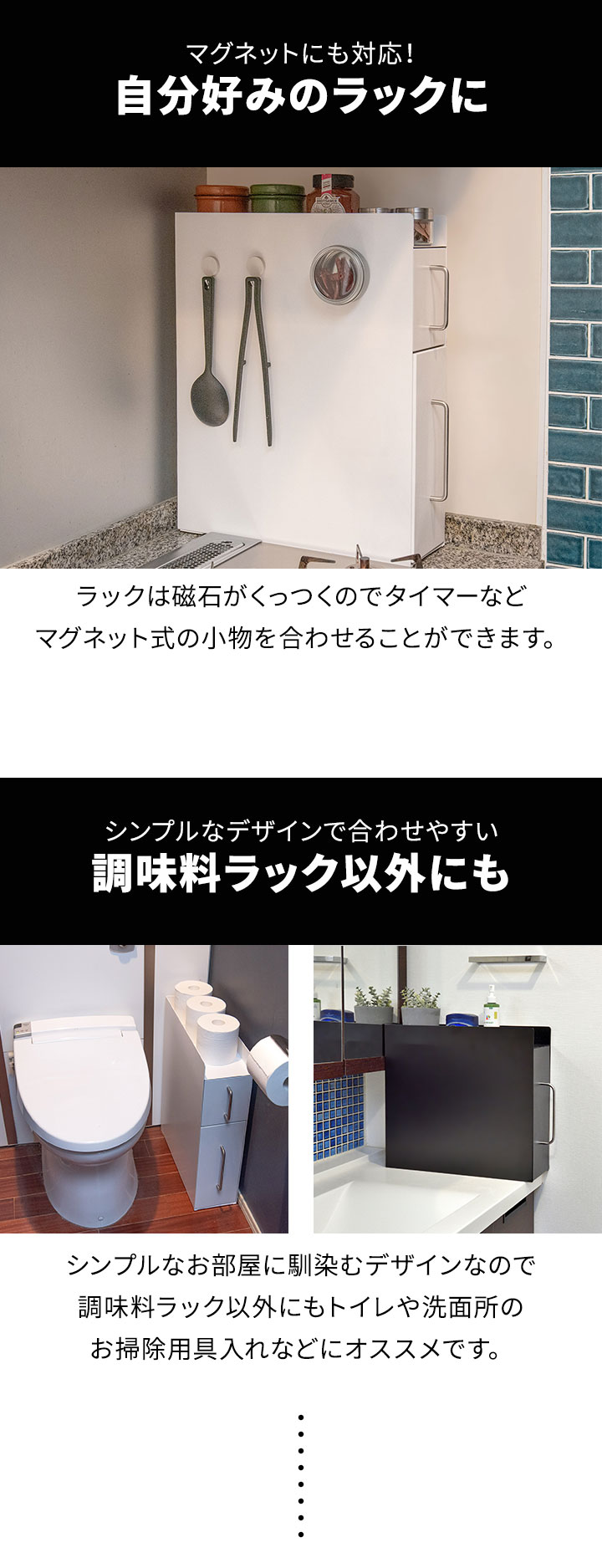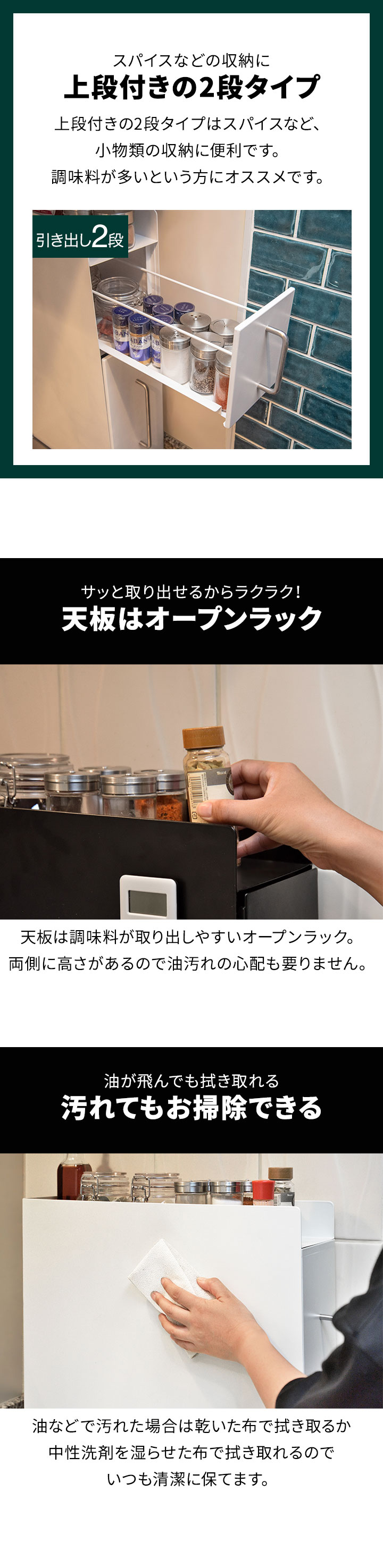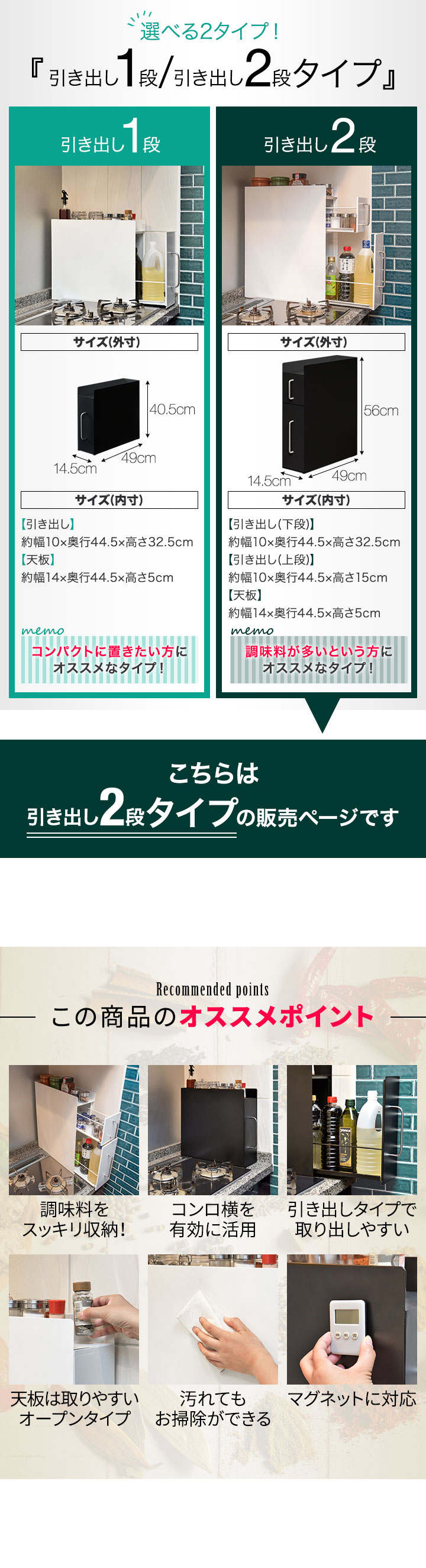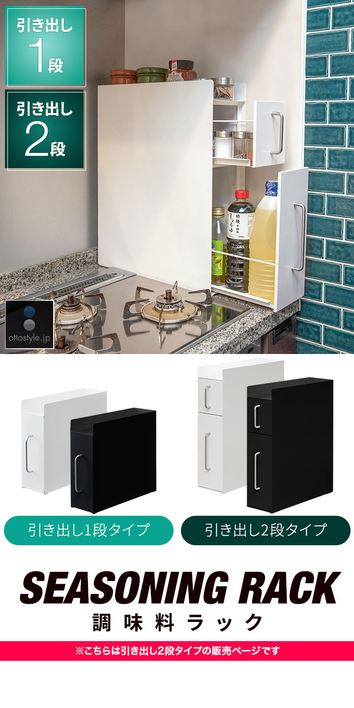 調味料ラック 隠せる調味料ラック (引き出し2段タイプ/ブラック) 上下 2段 スリム キッチン収納 幅14.5cm 奥行45cm スライド引き出し 隙間収納 すきま収納 調味料ストッカー 隠す スパイスラック コンロ横 スチール マグネット シンプル 隠す収納 調味料入れ おしゃれ 送料無料