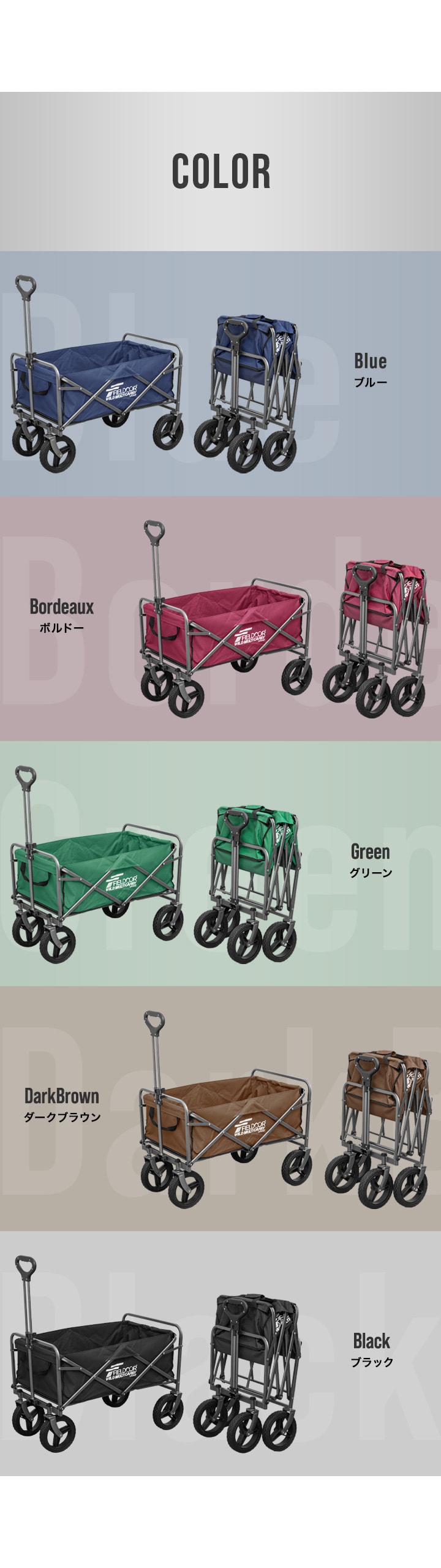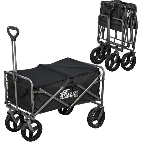 FIELDOOR アウトドアワゴン 94L (ブラック/本体&カバーセット) キャリーワゴン 大容 ワイルドマルチキャリー ライト 大径タイヤ 折りたたみ 耐荷重100kg キャリーカート アウトドア キャンプ カート 簡単 台車 アウトドアキャリー キャリーカート BBQ 荷物 運ぶ 送料無料