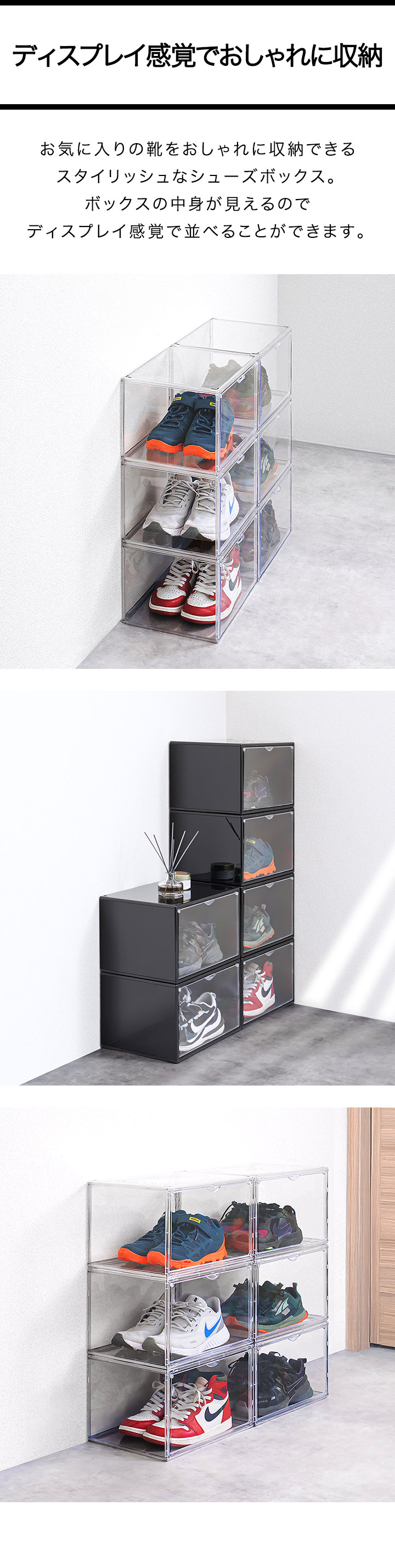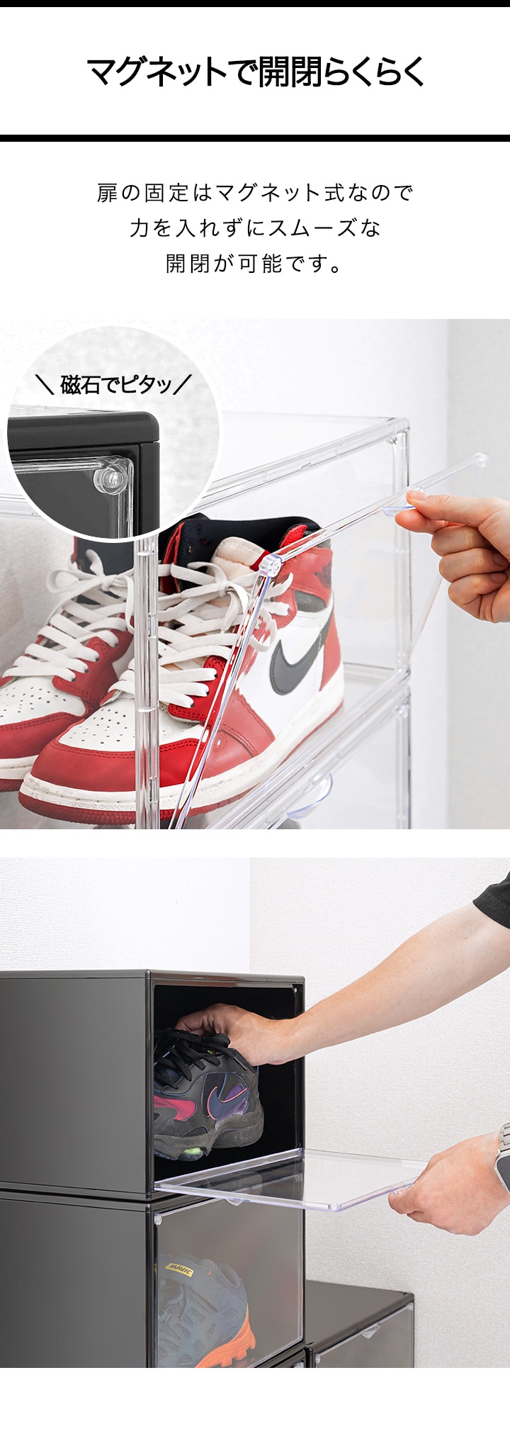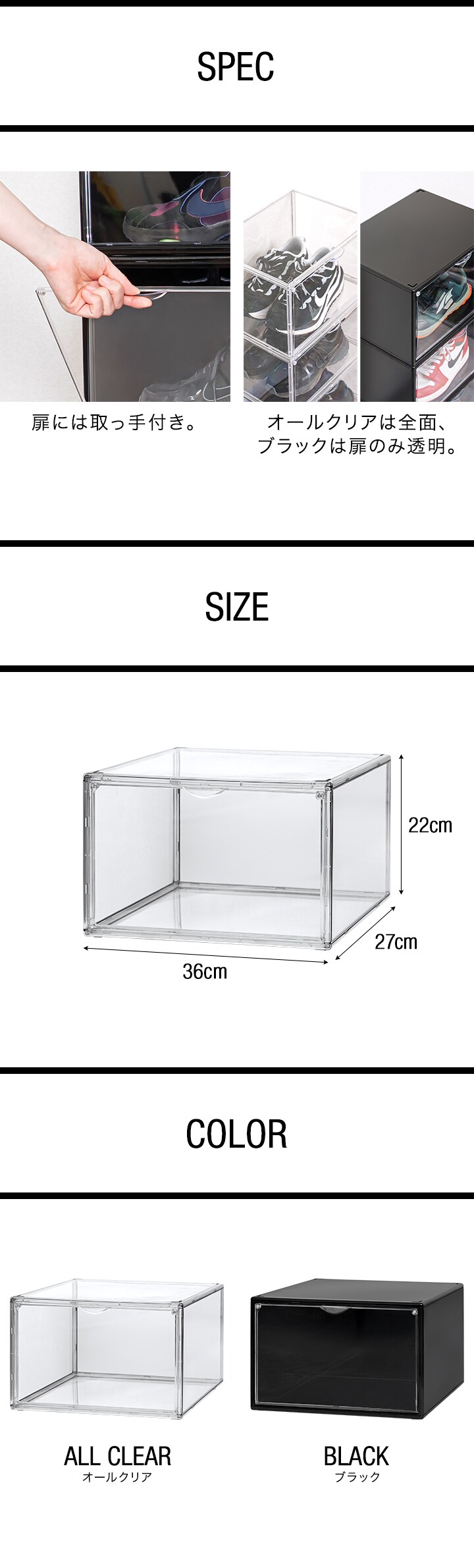 シューズボックス 単品 (オールクリア) 横型 ディスプレイシューズボックス 幅36cm シューズケース コレクションケース 扉付き BOX マグネット おしゃれ インテリア 収納 シューズラック 1足 靴箱 下駄箱 スニーカー クリア 透明 送料無料