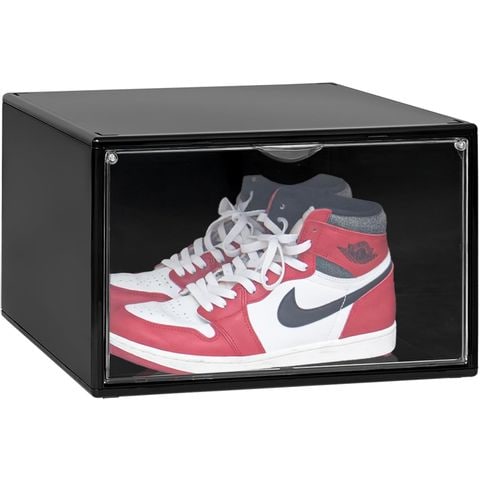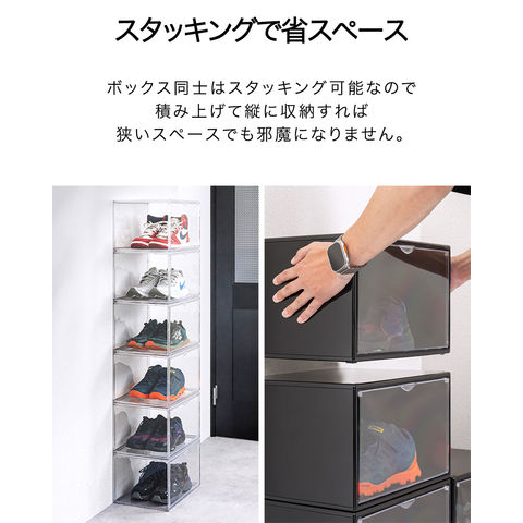 シューズボックス 単品 (ブラック) 横型 ディスプレイシューズボックス 幅36cm シューズケース コレクションケース 扉付き BOX マグネット おしゃれ インテリア 収納 シューズラック 1足 靴箱 下駄箱 スニーカー クリア 透明 送料無料