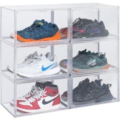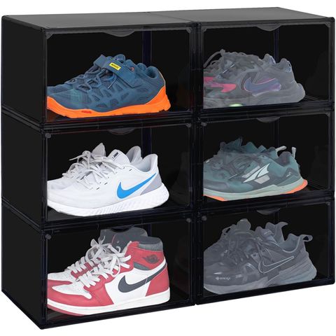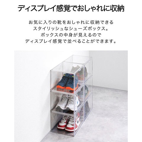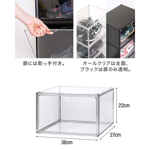シューズボックス 6個セット (ブラック) 横型 ディスプレイシューズボックス 幅36cm シューズケース コレクションケース 扉付き マグネット おしゃれ インテリア 収納 シューズラック 1足 靴箱 下駄箱 スニーカー クリア 透明 送料無料