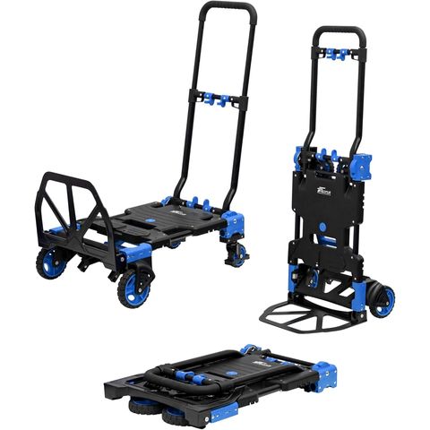 FIELDOOR 台車 折りたたみ (ブラック×ブルー) 折りたたみ台車 コンパクト キャスター付き 静音 4輪/2輪台車 2WAYタイプ 耐荷重140kg ハンドキャリー 手押し台車 スリム フラット キャリーカート 折り畳み 軽量 業務用 家庭用 アルミ スチール 運搬台車 送料無料