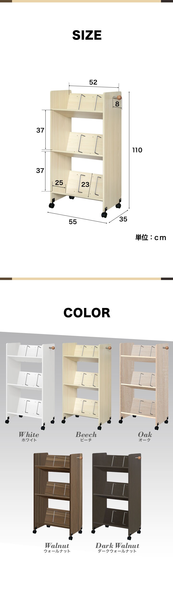 ファイルワゴン キャスター付き 3段 (ホワイト) ファイルラック 斜め A4 幅55cm 奥行35cm 高さ110cm ファイル収納 書類ラック 本棚ファイルボックス ファイルスタンド ファイルケース サイドチェスト サイドラック ファイル 整理 収納 送料無料