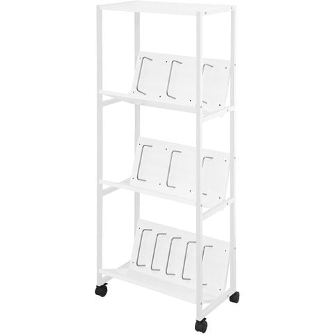 ファイルラック 斜め キャスター付き (ホワイト/ホワイトフレーム) 4段 ハイタイプ ファイルワゴン 本棚 収納棚 書類ラック A4 幅56cm 奥行31.5cm スリム スチールラック ファイル収納 ファイルボックス ファイルスタンド ファイルケース ファイル 書類 収納 オフィス収納 送料無料