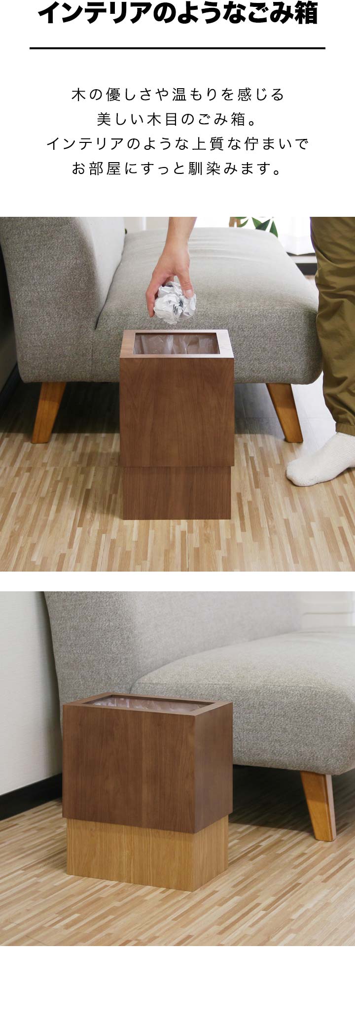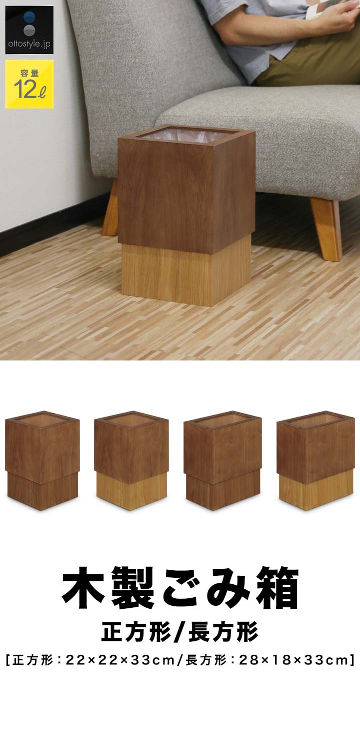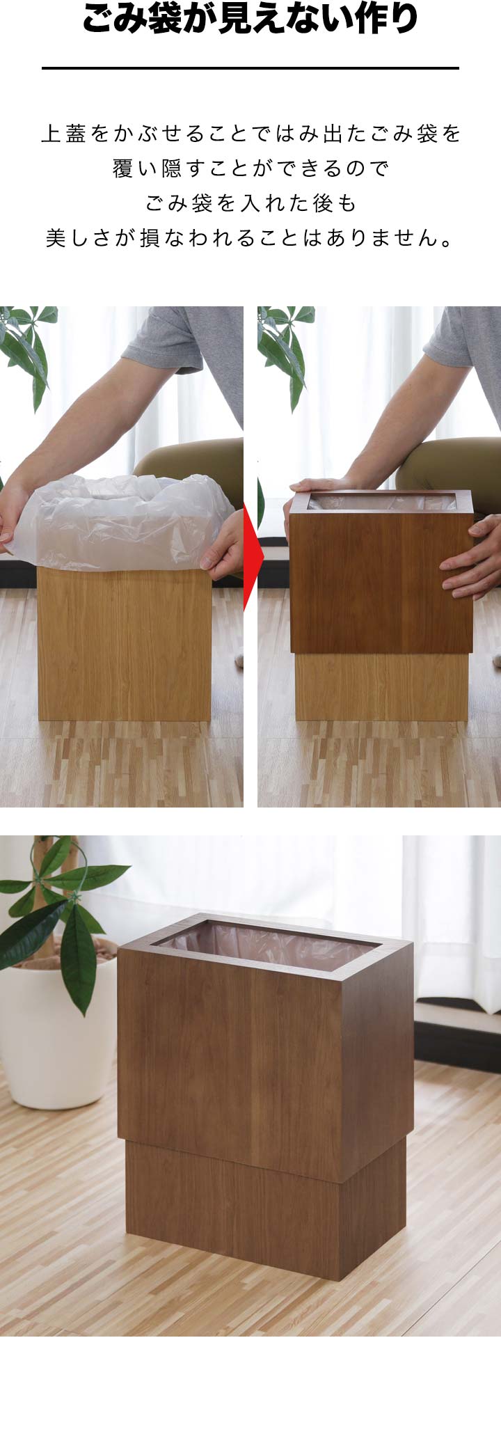 ゴミ箱 スリム 12L (正方形/ウォールナットxウォールナット) 木製 ゴミ袋が見えない おしゃれ 被せる 小さい ごみ箱 20リットル ゴミ袋 対応 正方形 長方形 角型 四角 木 ウッド ダストボックス ごみ袋 隠す 隠せる 省スペース インテリア 洗面台 ホテル バスルーム 送料無料