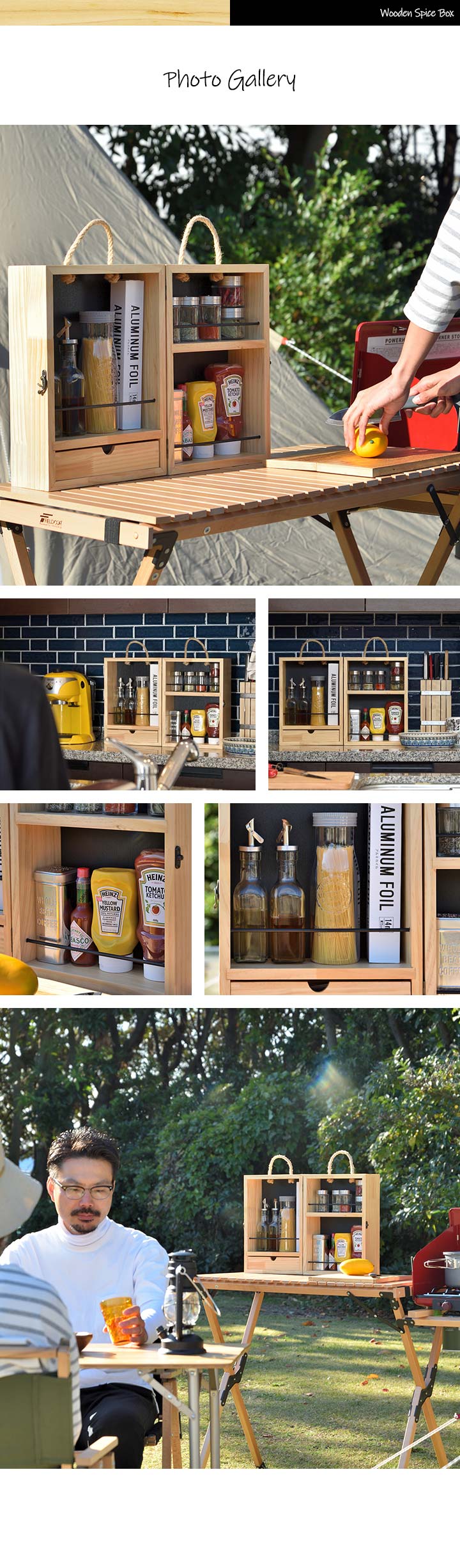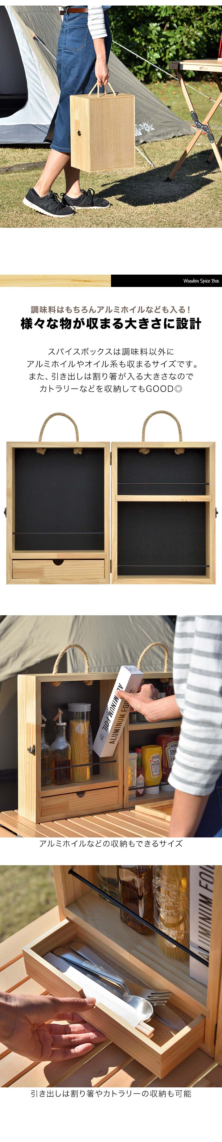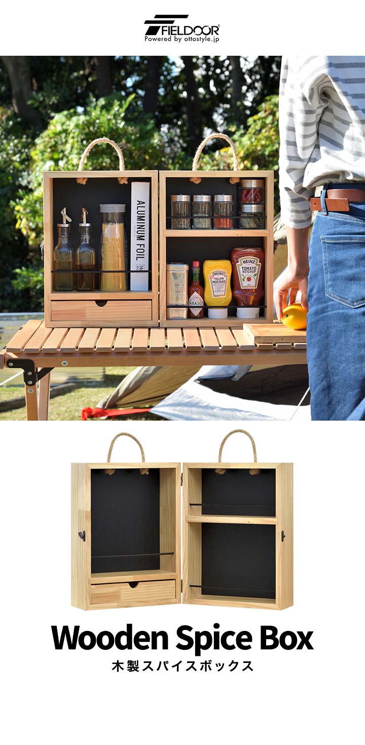 FIELDOOR スパイスボックス 木製 調味料入れ 折りたたみ キャンプ 持ち運び スパイス ボックス 調味料ケース 調味料ボックス スパイスBOX 調味料 収納 小物 アウトドア DIY BBQ バーベキュー キャンプ用品 おしゃれ 送料無料