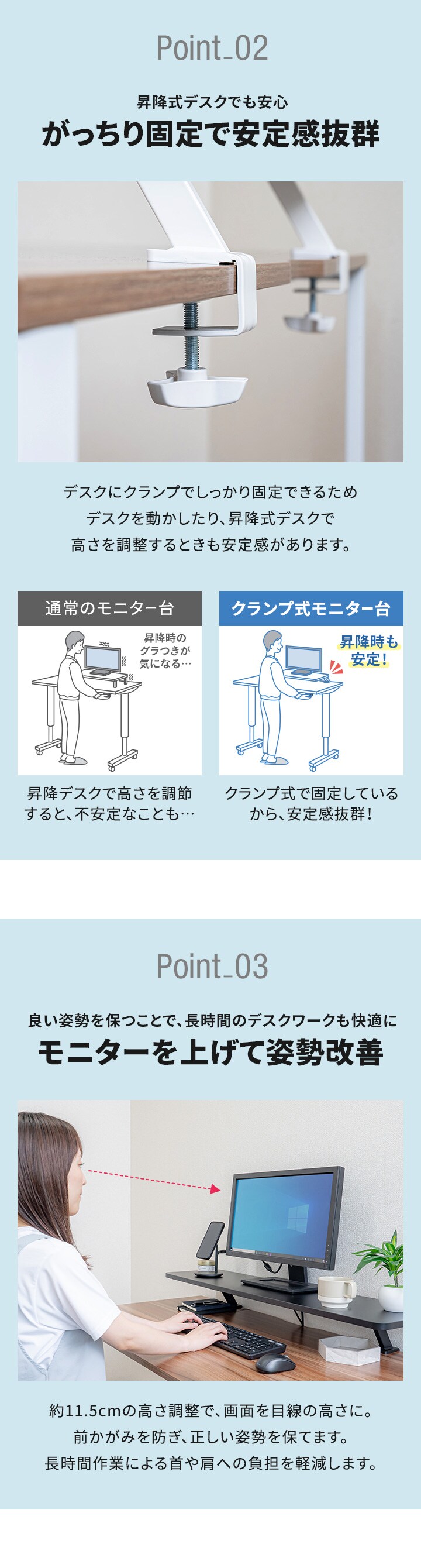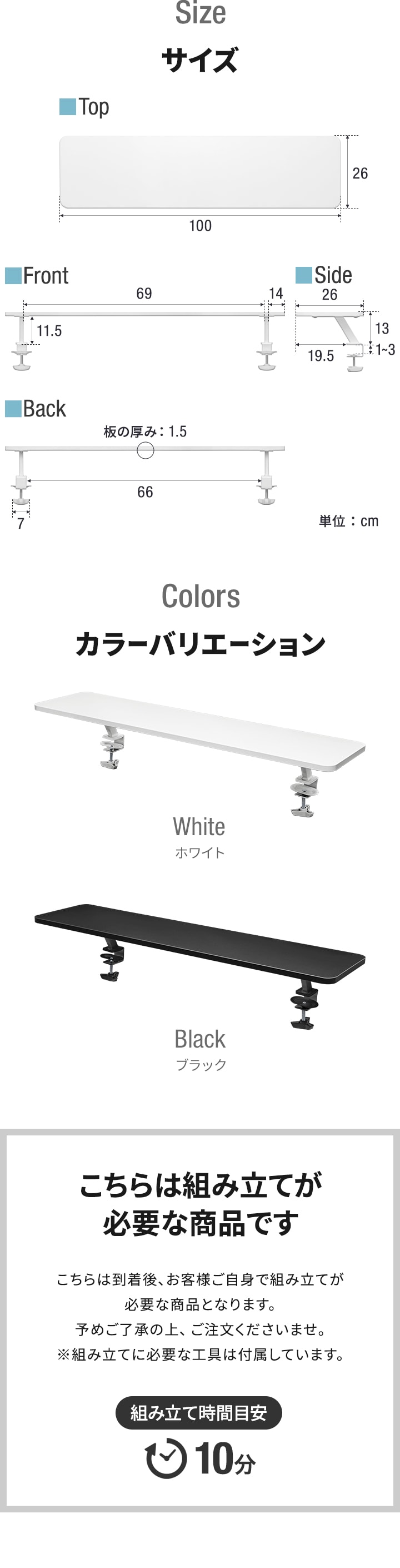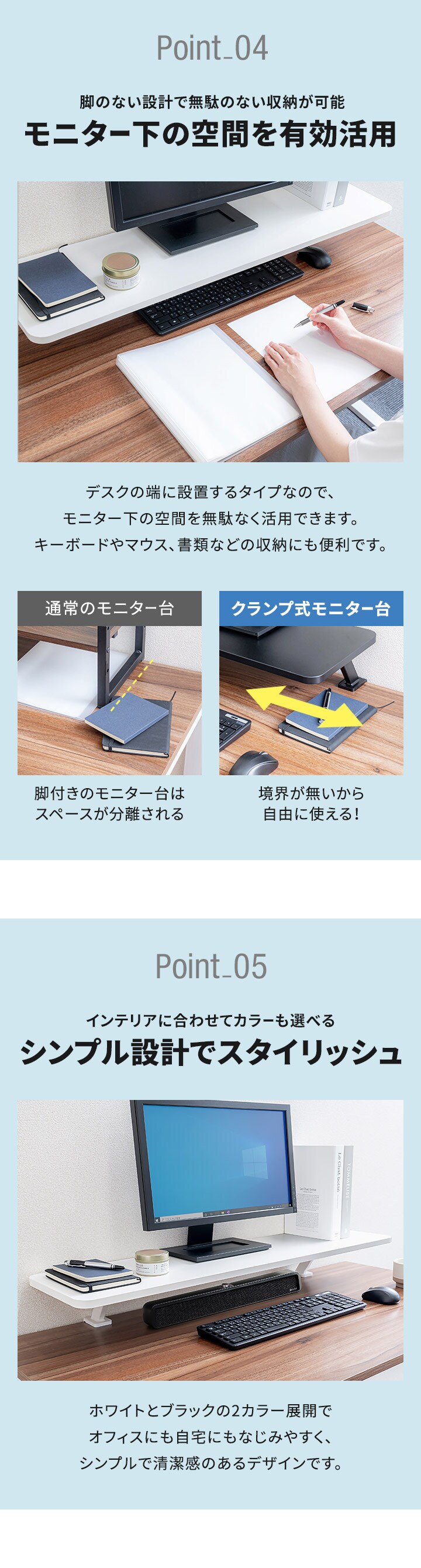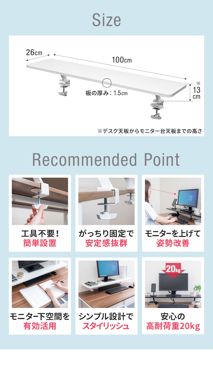 モニター台 モニタースタンド 机上台 (ホワイト) クランプ式 固定 幅100cm×奥行26cm×高さ13cm ワイド 卓上 キーボード収納 PC台 パソコン ラック 卓上ラック 机上ラック デスク上 デスク周り オフィス収納 白 黒 おしゃれ 送料無料